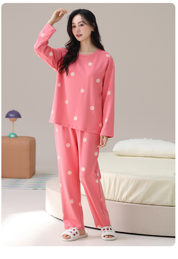 大码100%棉睡衣女纯棉秋冬长袖柔软亲肤圆领春秋季全棉家居服套装