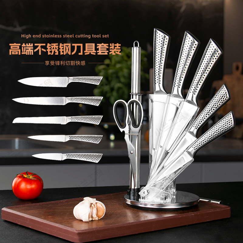 ステンレス包丁セット8点セット家庭用シェフ包丁台所用包丁回転包丁座ギフトセット現物