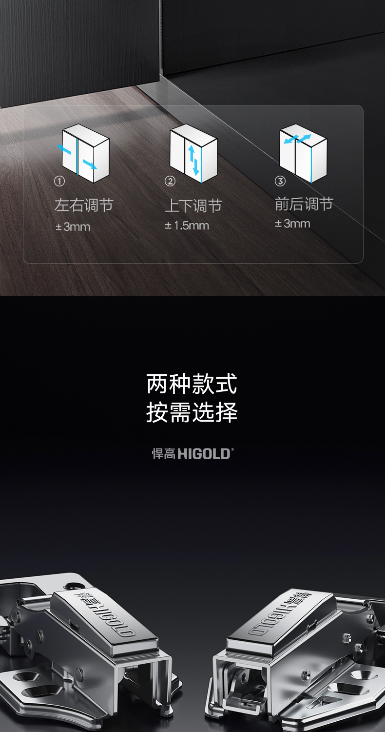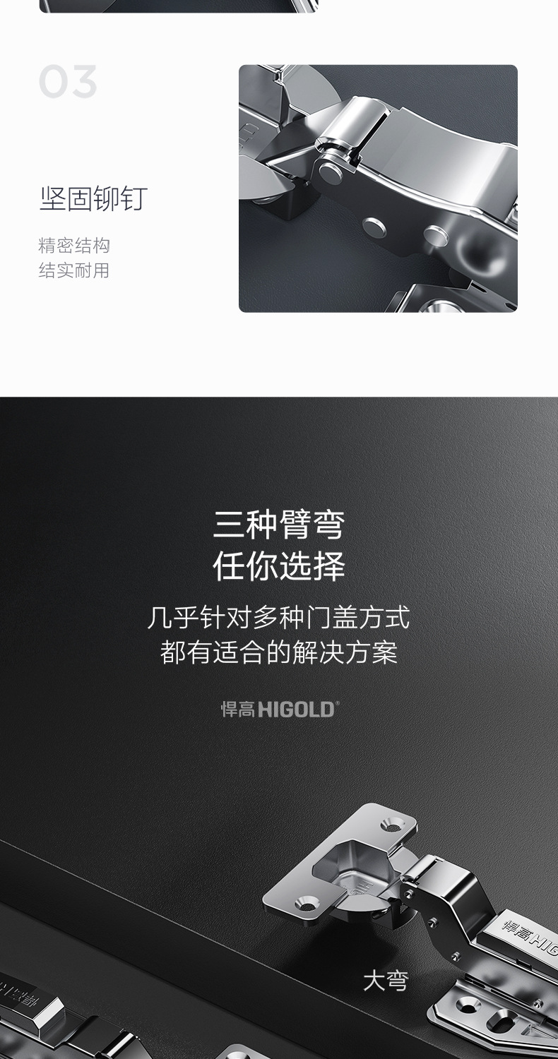 HIGOLD/悍高G系列三段力小角度缓冲铰链衣柜橱柜液压阻尼弹簧合页