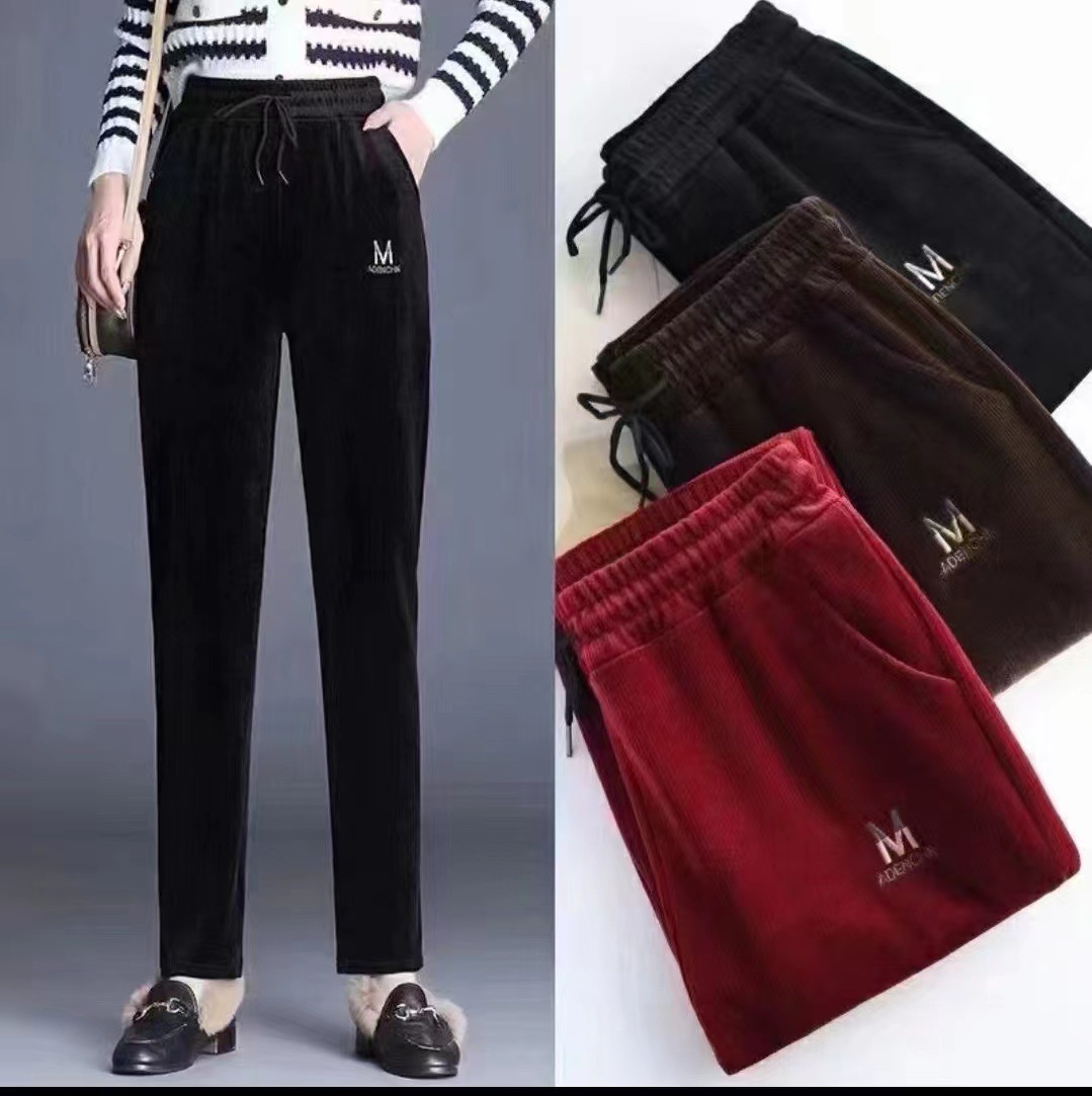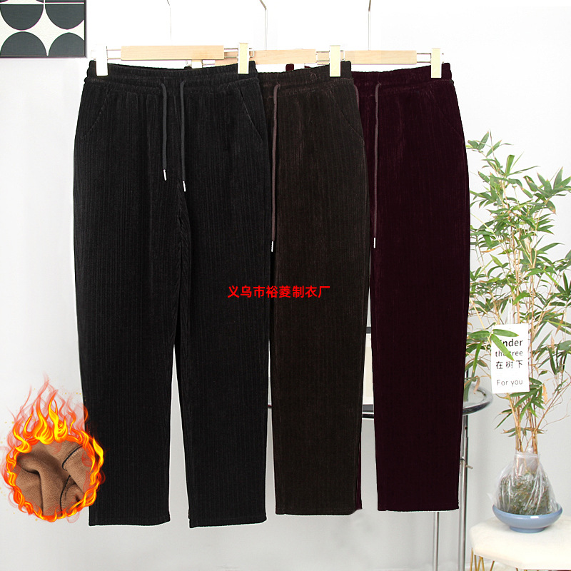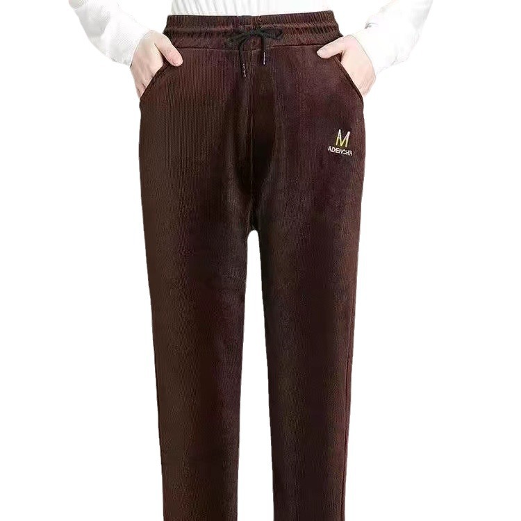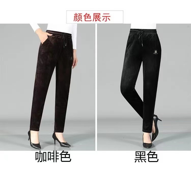 秋冬の新型のシェニールとベルベットのカジュアルパンツの女性のベルベットの厚いストレートパンツの女性のゆるいお母さんの保温ズボン