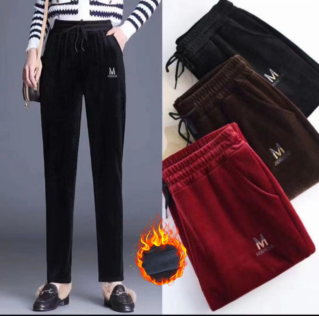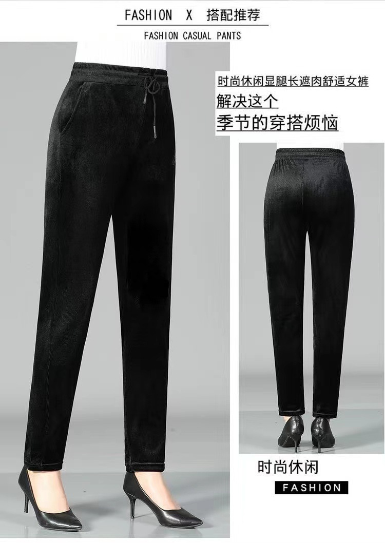 高品質ゴールドミンクベルベットストレートレッグレディースパンツ、裏起毛厚手、着痩せ効果、ママパンツ、ゴムウエスト、万能カジュアル