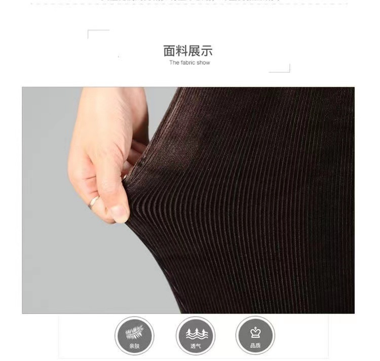 25 中高年向け冬用裏起毛ハイウエストカジュアルパンツ、コーデュロイ長ズボン、ストライプ柄、お母さん向け冬物レディースカジュアルパンツ