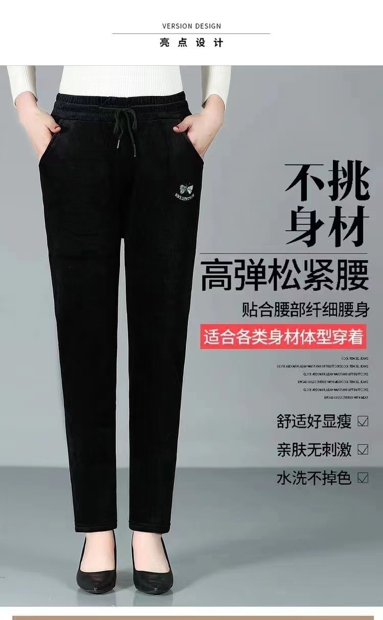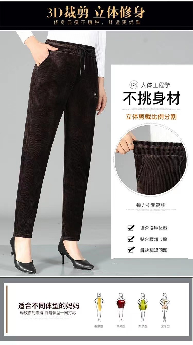 2025加绒新款休闲裤小脚裤条绒木耳绒泡泡条妈妈裤 中老年女裤子