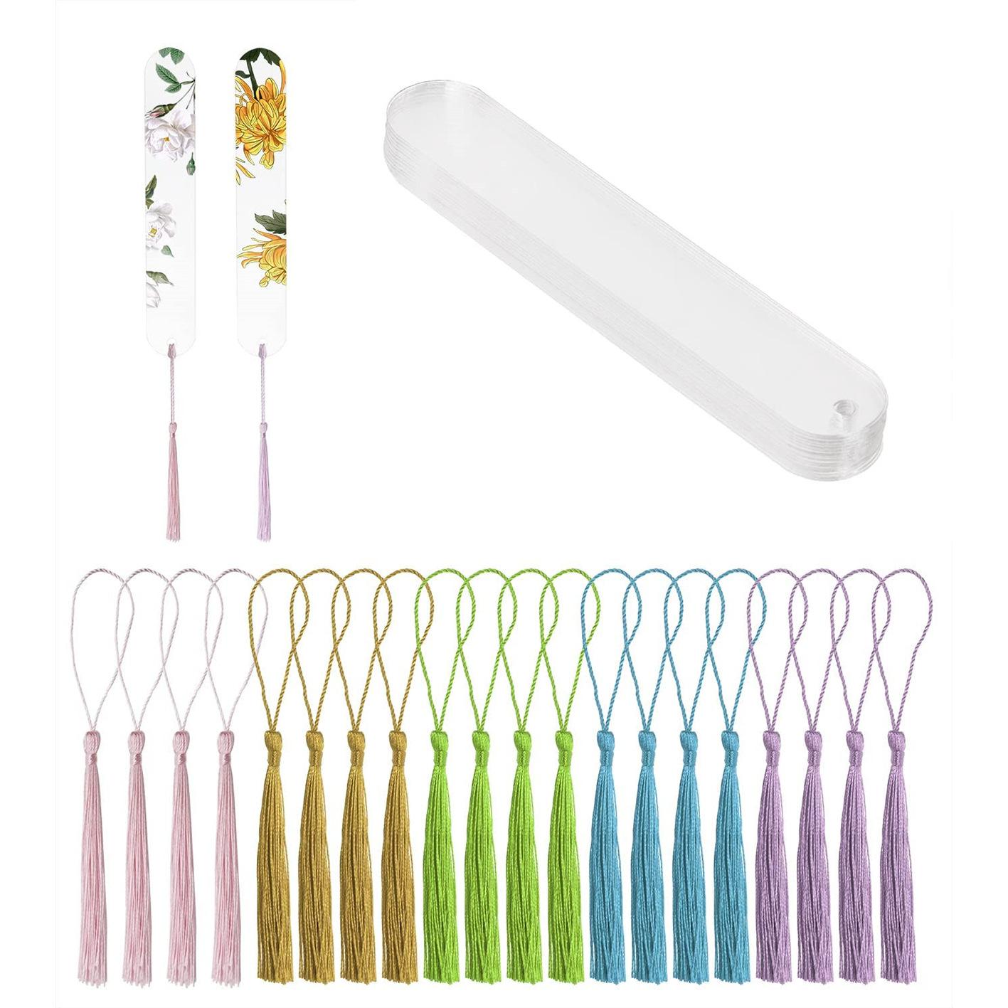 20枚の透明な空白のアクリルブックマークのブックマークdiy未完成のカラータッセルのペンダント