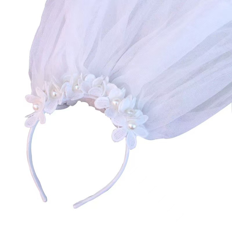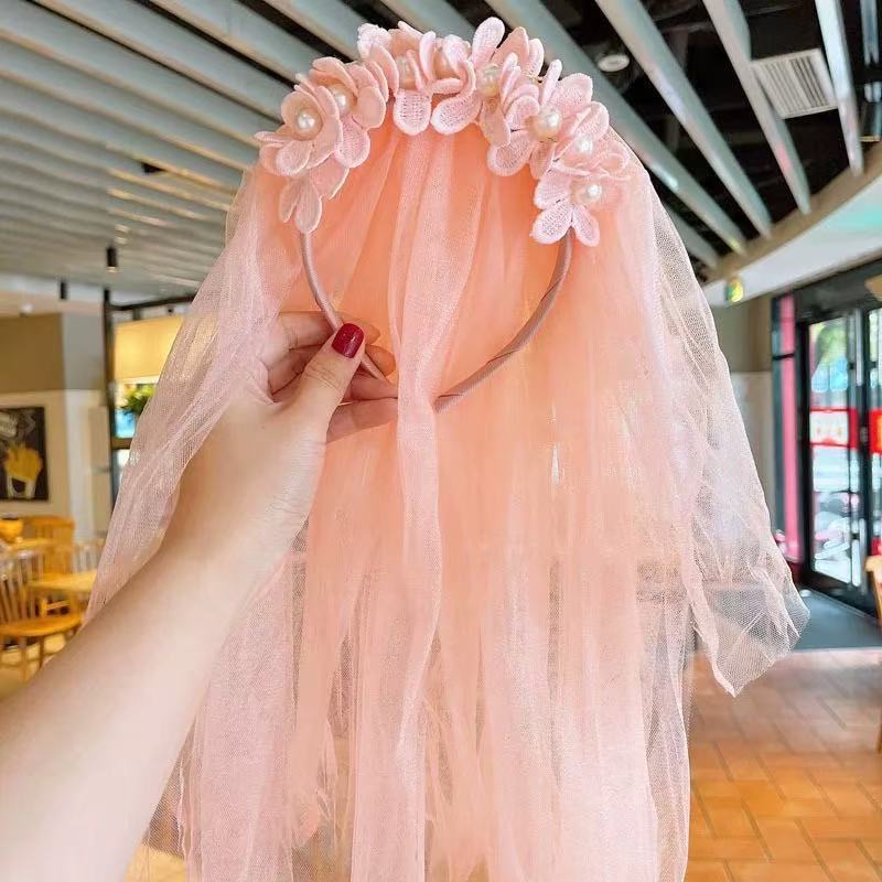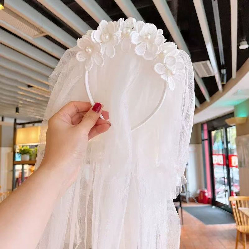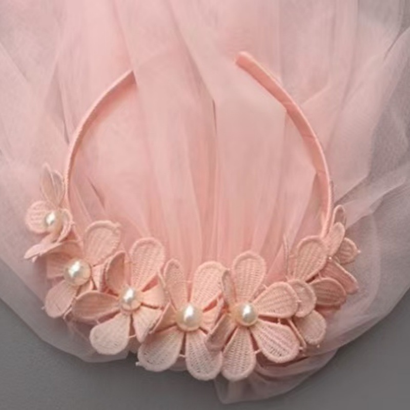 新しい超仙気なプリンセス風子供用ネットガーゼヘアバンド、花とパールのヘアアクセサリー。