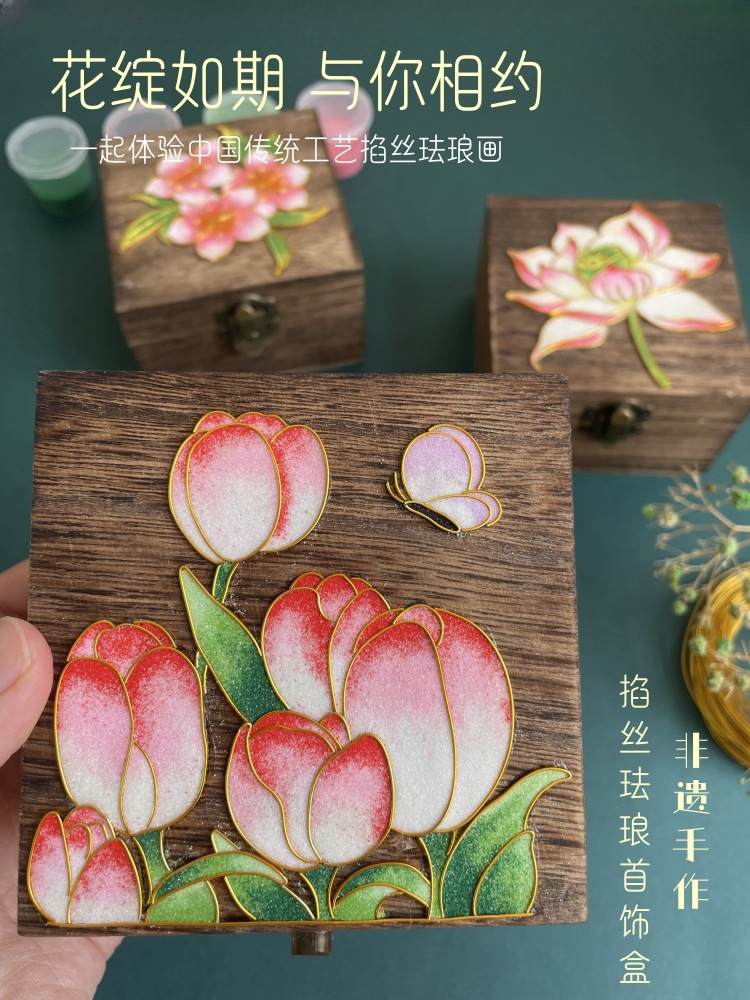 掐丝珐琅首饰盒diy景泰蓝材料包国风送朋友手工礼物非遗团建活动