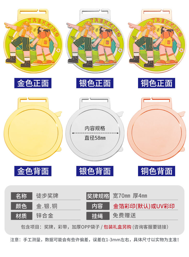 徒步奖牌团体登山完赛金牌定 做制毅行团建活动纪念奖章挂牌纪念