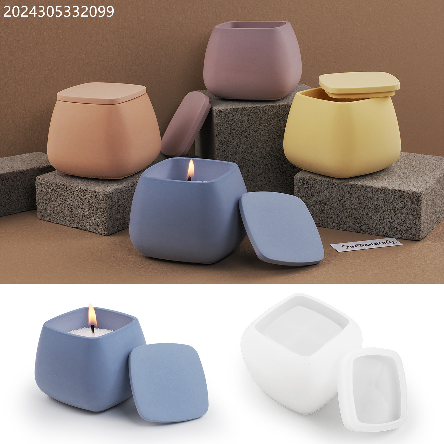 Diyドリップセメント石膏キャンドルカップ角型蓋付き正方形大腹収納缶鏡面シリコン金型