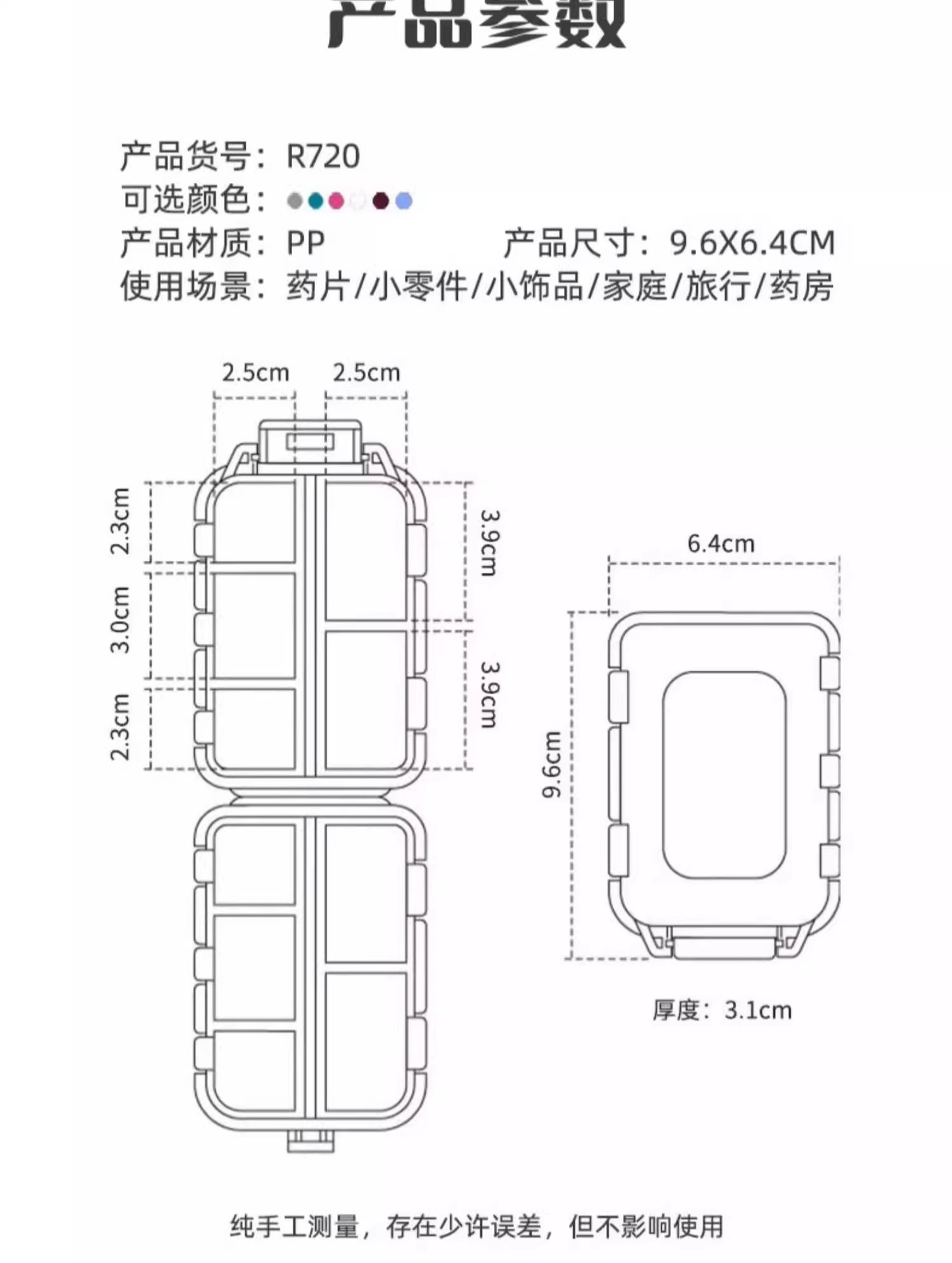 跨境双层小药盒分装药盒随身便携式药丸盒子透明10分格密封收纳盒