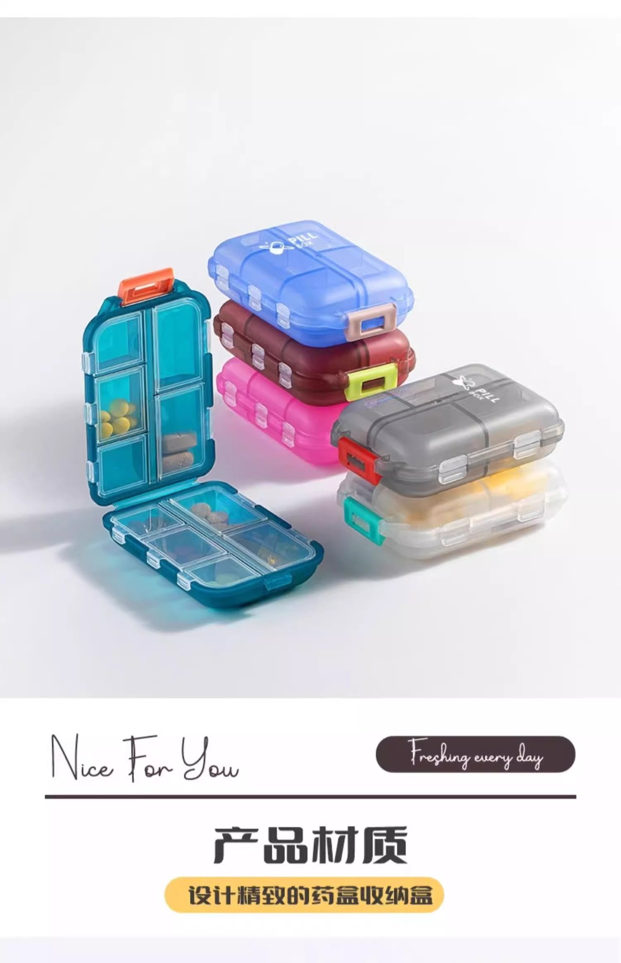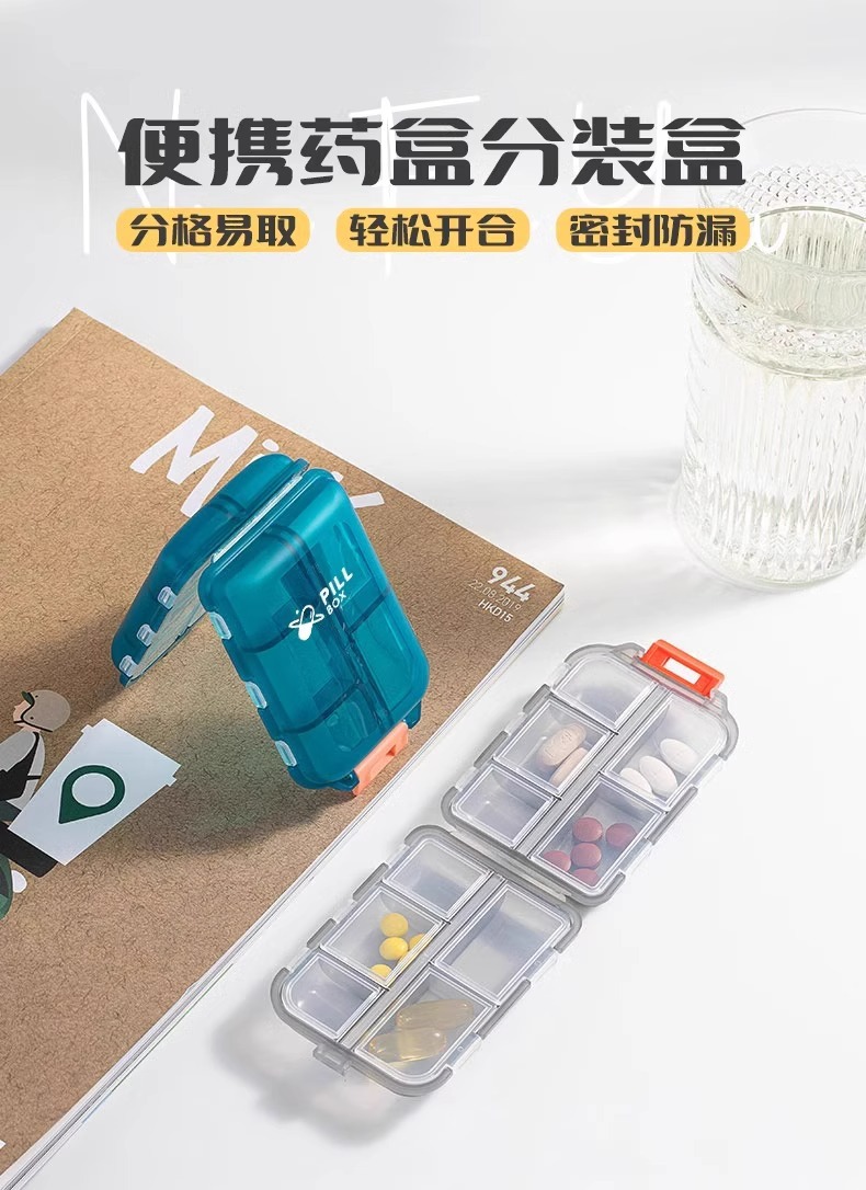 跨境便携式双层小药盒随身便携药丸分装盒10分格密封药品旅行收纳