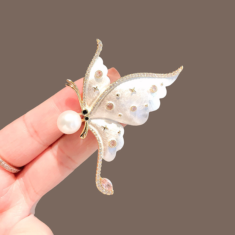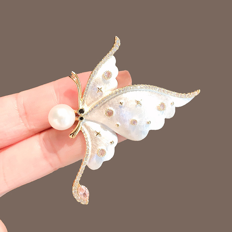 高級豪華真珠霊動蝶ブローチ個性気質洋服ピンファッション水晶胸花アクセサリー2024