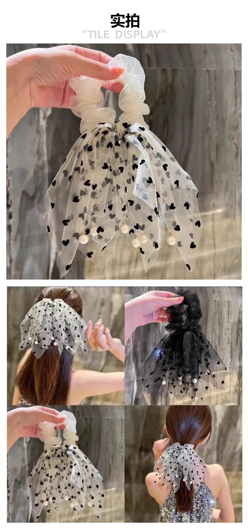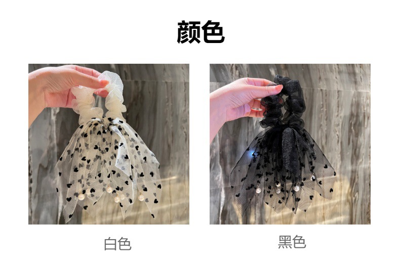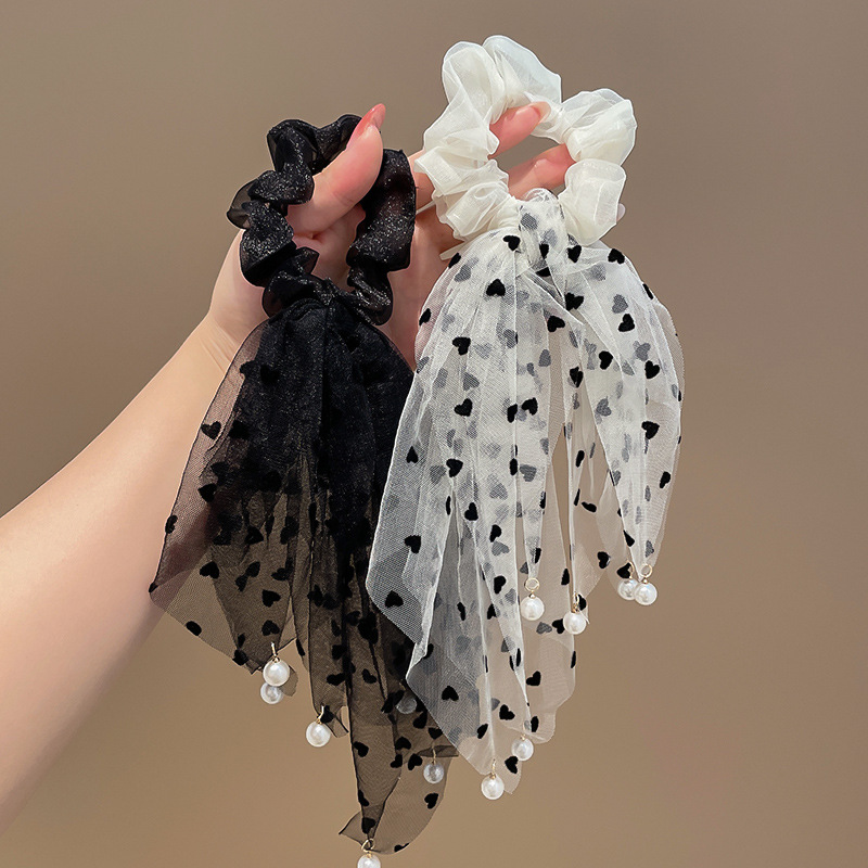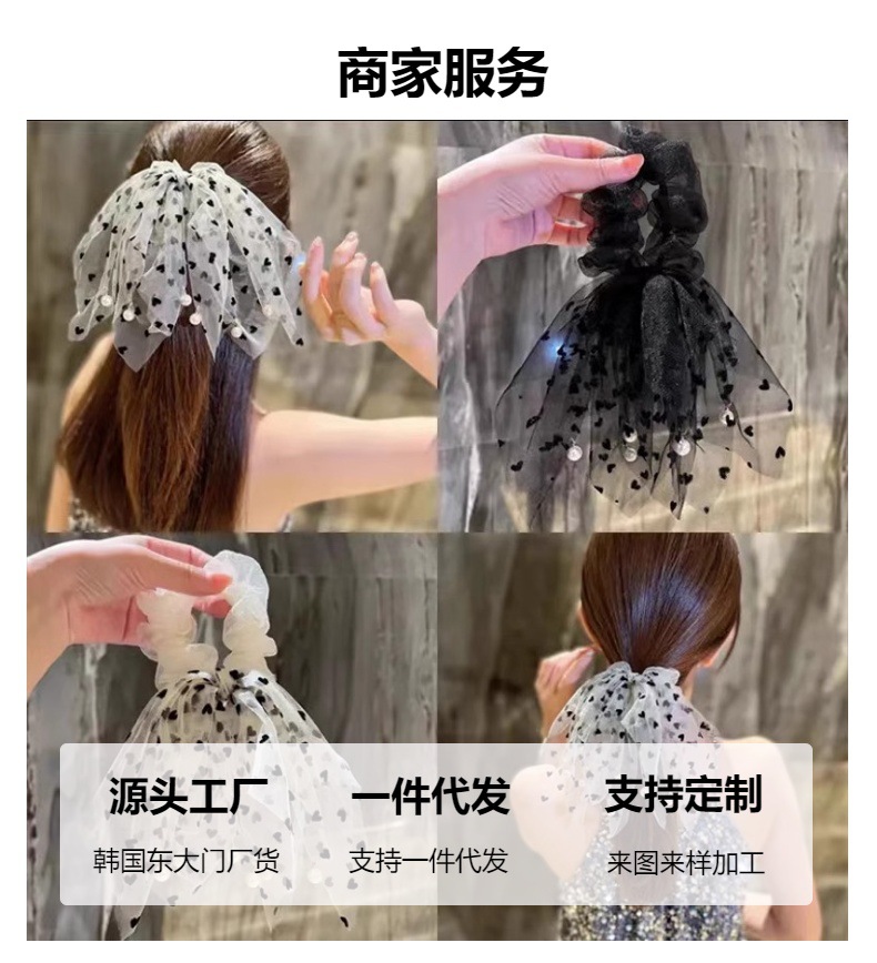 波点小流蘇真珠網糸髪輪ひも大腸輪団子頭皮筋髪ひも女性リボン髪飾り