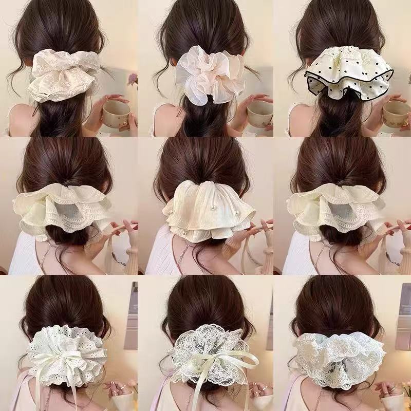 韩版高级感蕾丝大肠发圈2025新款皮筋法式慵懒感复古花边发圈头饰