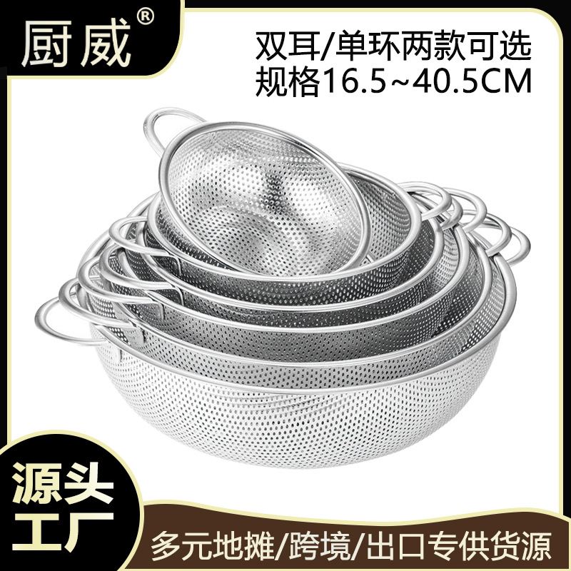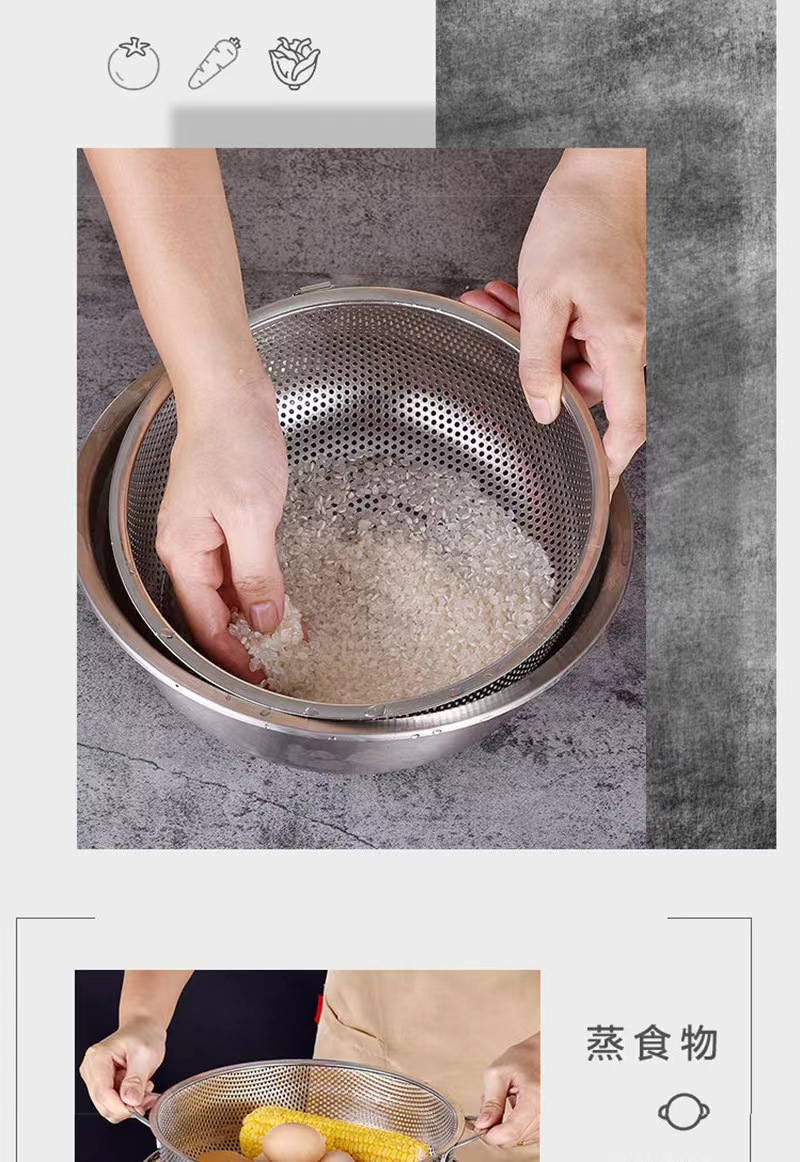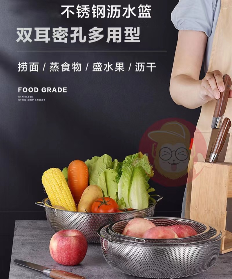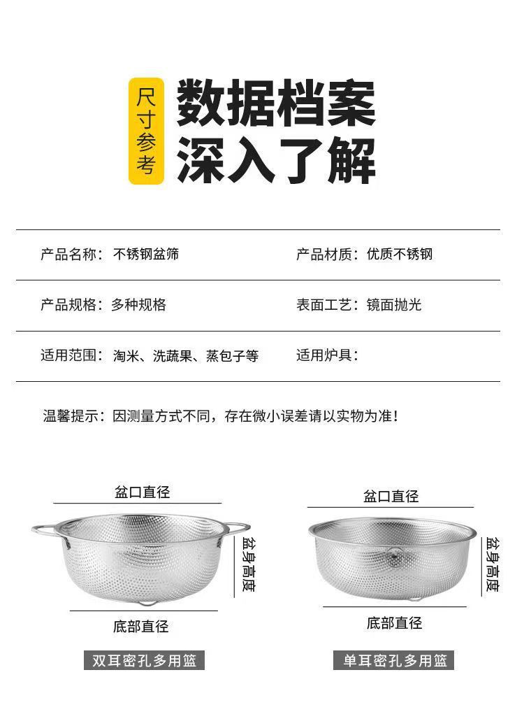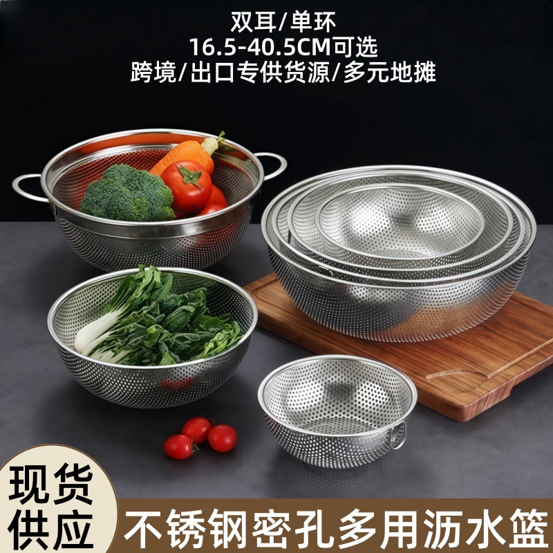 工厂直销不锈钢沥水篮密孔篮双耳多用篮沥水盆洗菜淘米筛水果篮