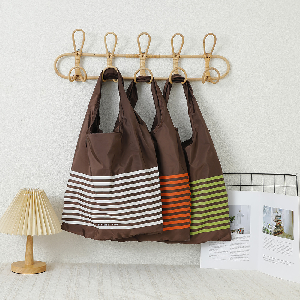 ストライプ柄の家庭用ショッピングバッグ、持ち運びに便利な大容量ポリエステル製ハンドバッグ、収納可能、折りたたみ式。