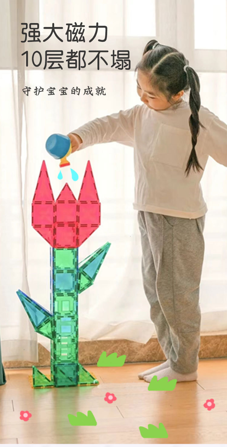 子供用大型カラー窓磁力片100枚観覧車磁気結合磁気吸引積み木百変磁気益智