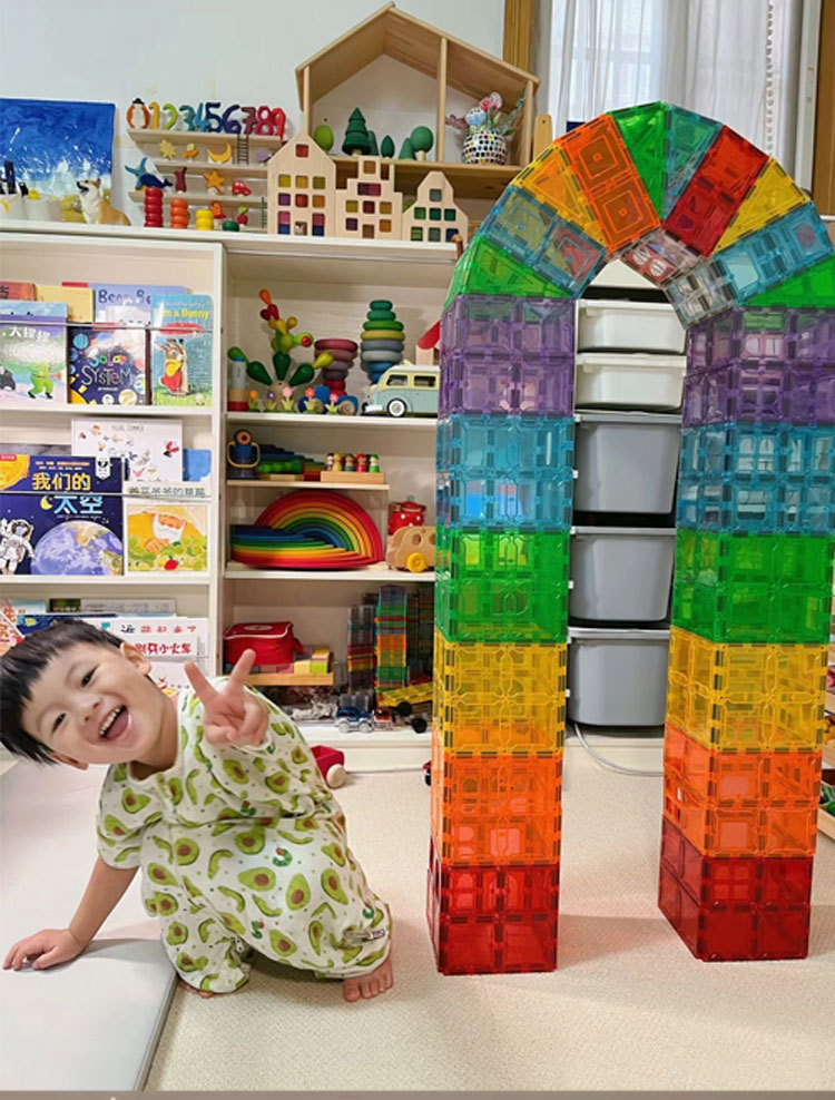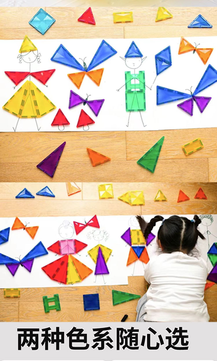 源メーカーのカラー窓磁力片益智玩具積み木構築思惟子供玩具組み合わせdiyセット