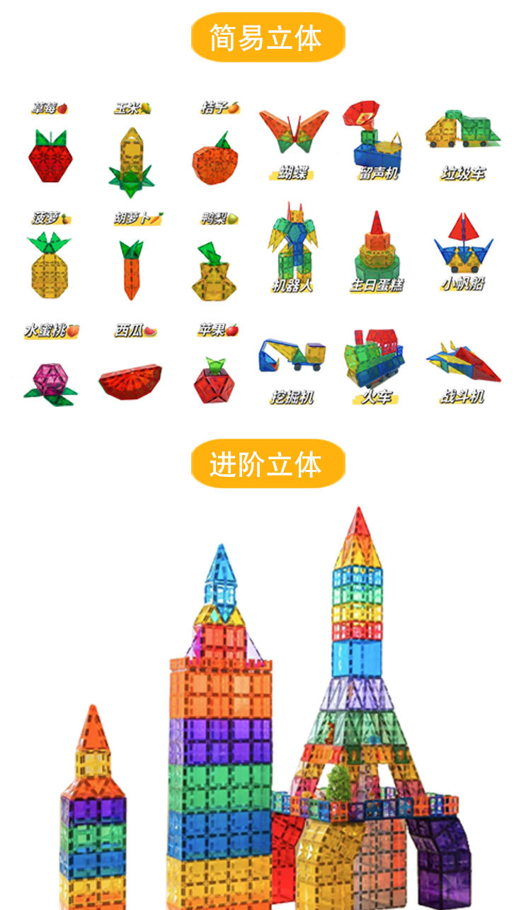 ONSHINE/童年无限大自然色磁力片益智玩具立体彩窗磁力片生日礼物