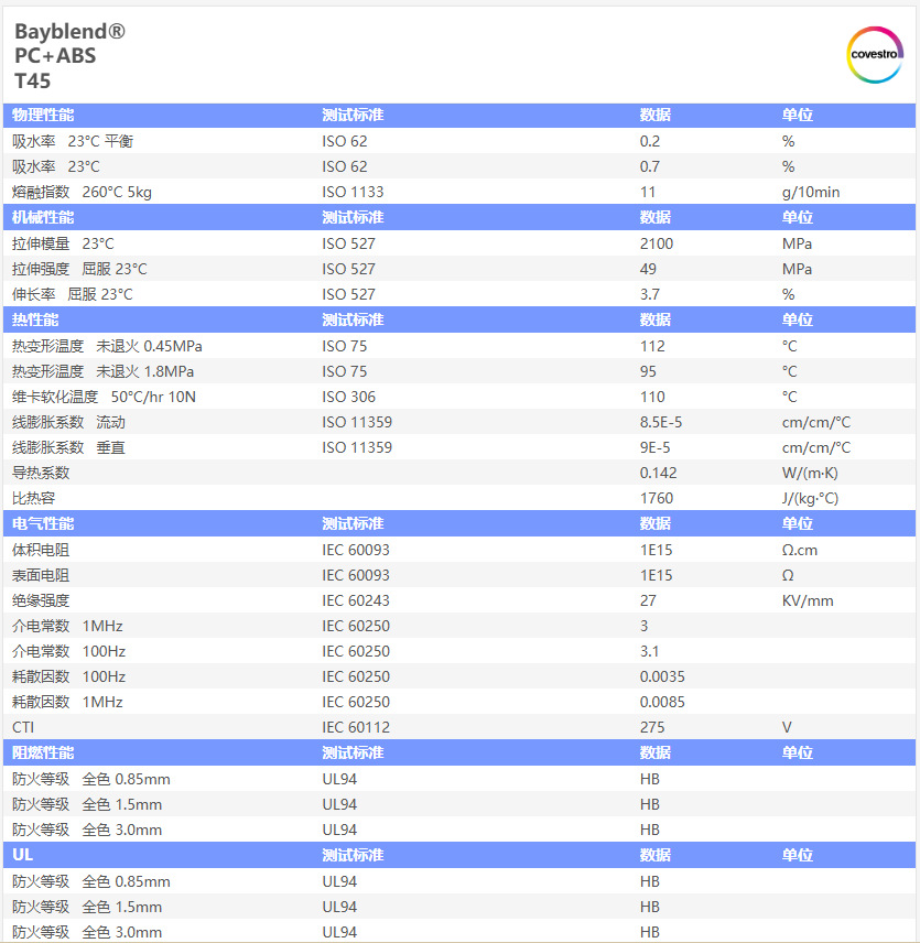 Pc/abs科思創T45高強度高靭性合金プラスチックメッキ級自動車部品電気ケース