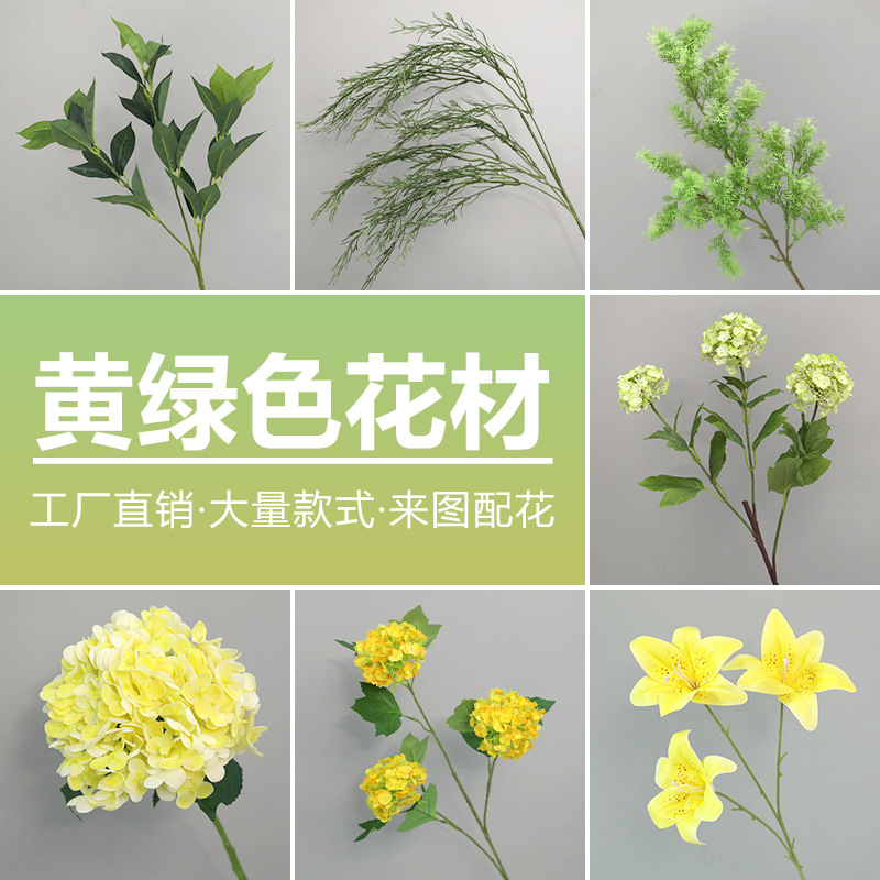 新しい黄緑結婚式造花結婚式フラワーアレンジメント花材屋外ディスプレイシーンレイアウト造花