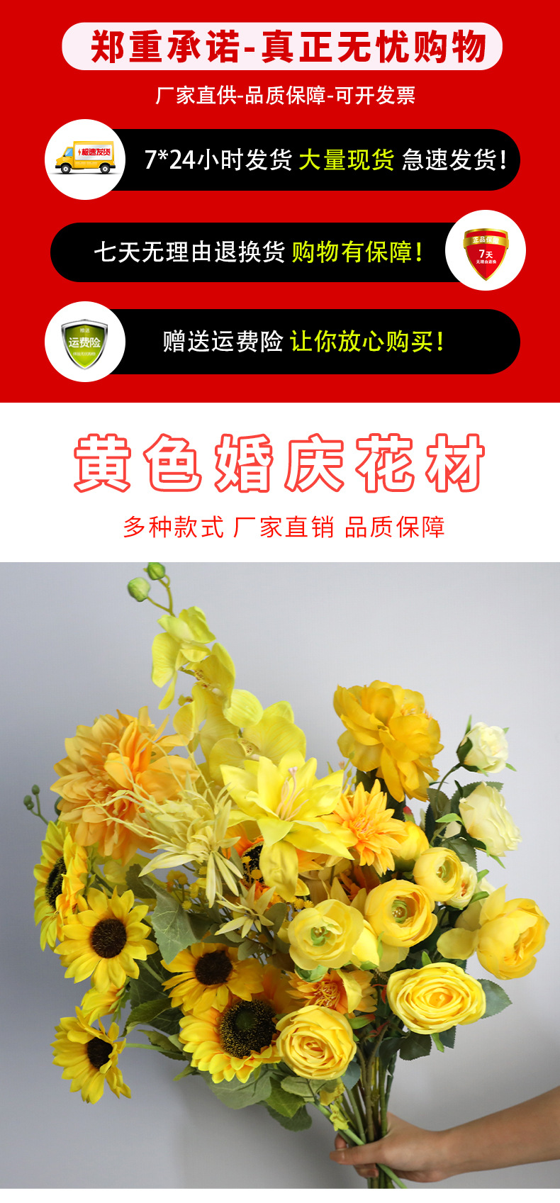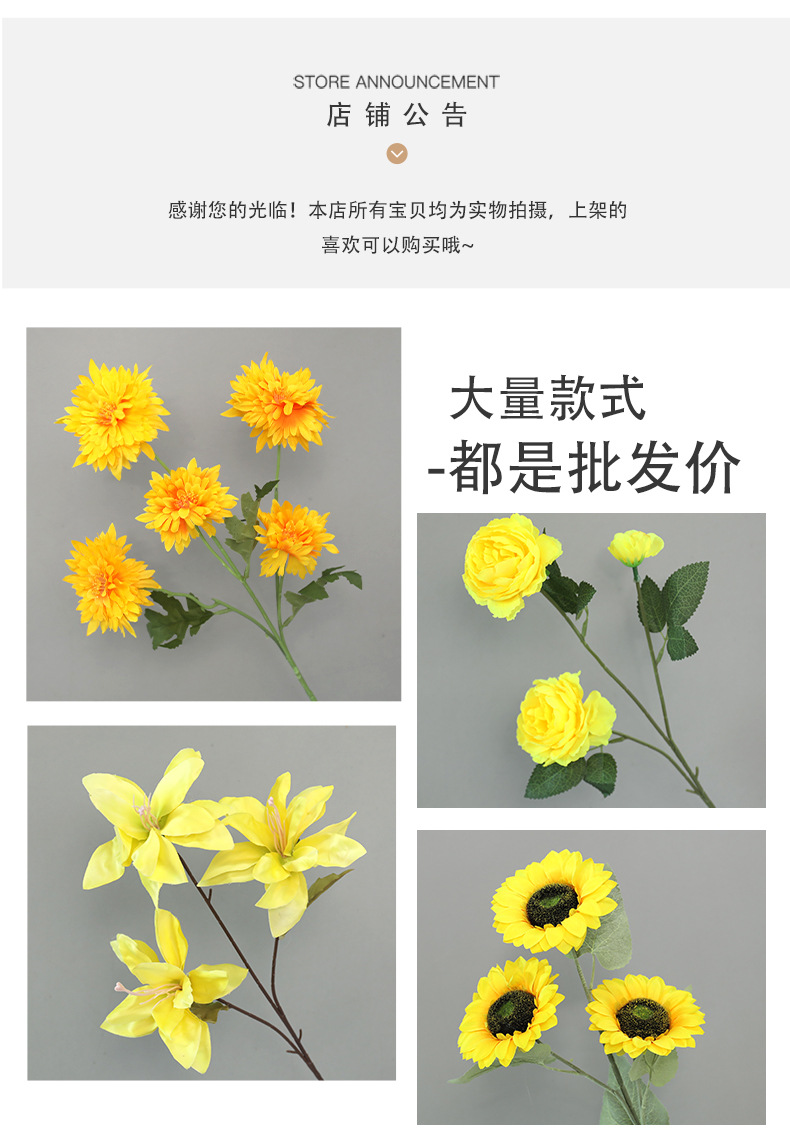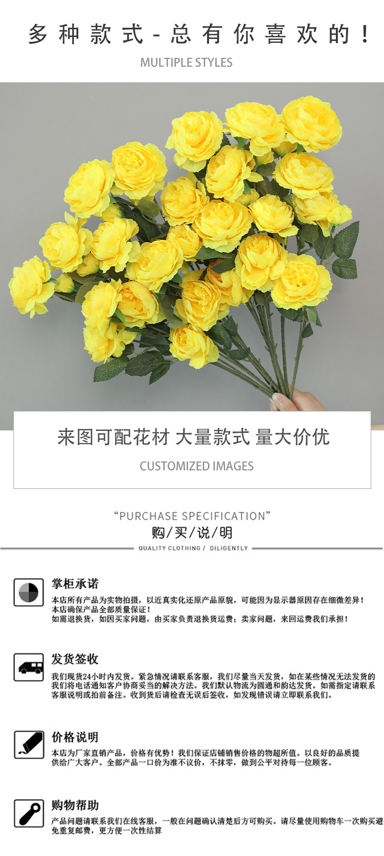 黄色の造花 ウェディングシーン装飾 フェイクフラワー 黄色の牡丹とユリ 高級感のあるホームデコレーション 花材卸売