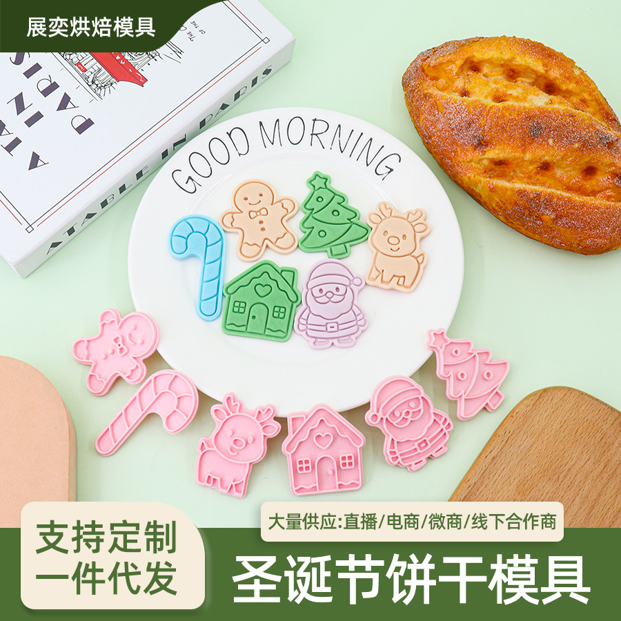 クリスマスビスケット金型3dプラスチック立体焙煎家庭用アイシングクリームケーキクッキープレス型スタンプ