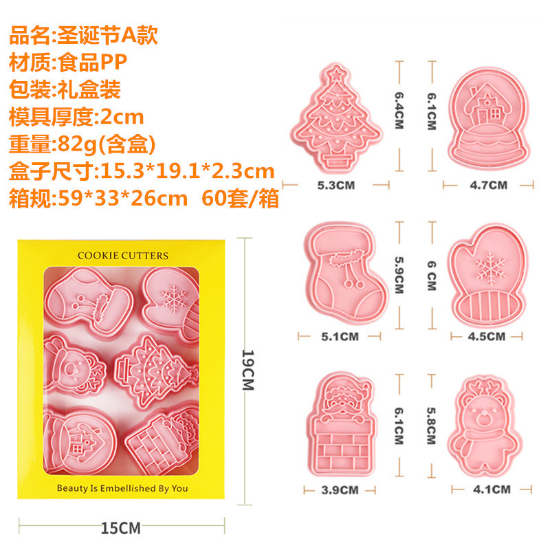 圣诞节饼干模具3D按压式糖霜蛋糕曲奇压模印章塑料立体烘焙家用