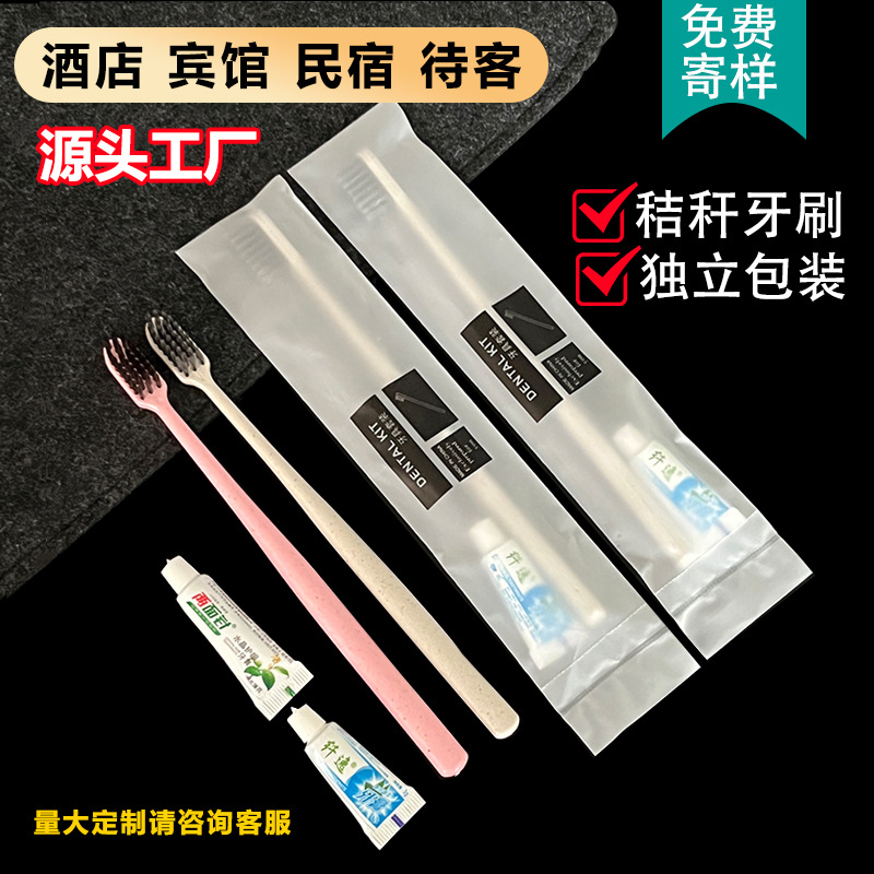 ホテル・旅館用使い捨て麦わら歯ブラシ2in1セット、民宿用ソフト毛歯ブラシ、卸売、環境に優しく分解可能