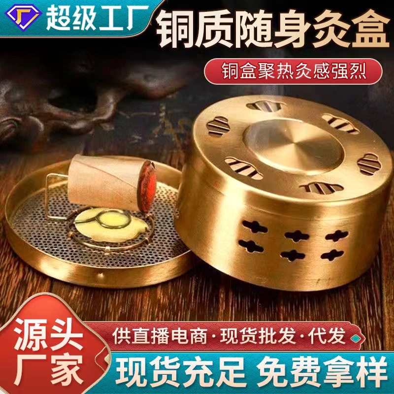 厚型灸箱 純銅製マッサージ 新型凹型携帯灸銅箱 家庭用温度調節可能 ポータブル 全銅製