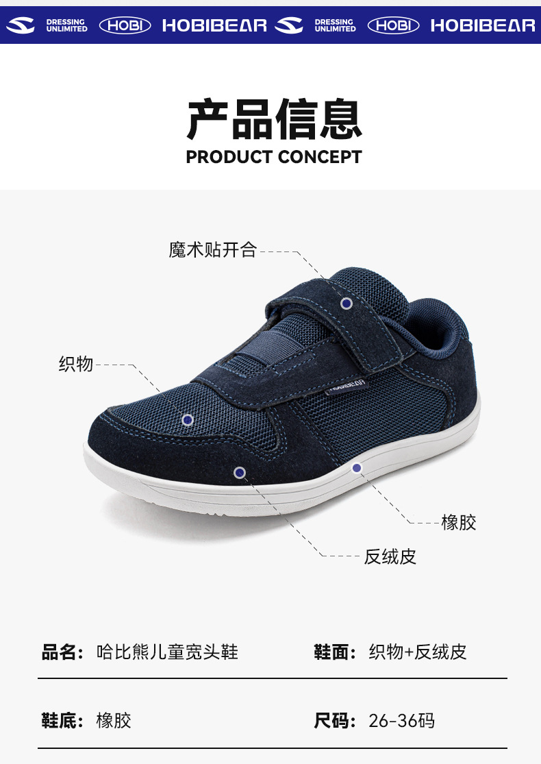 哈比熊革面宽头鞋户外运动鞋校园日常休闲鞋中大童健步鞋厂家直销
