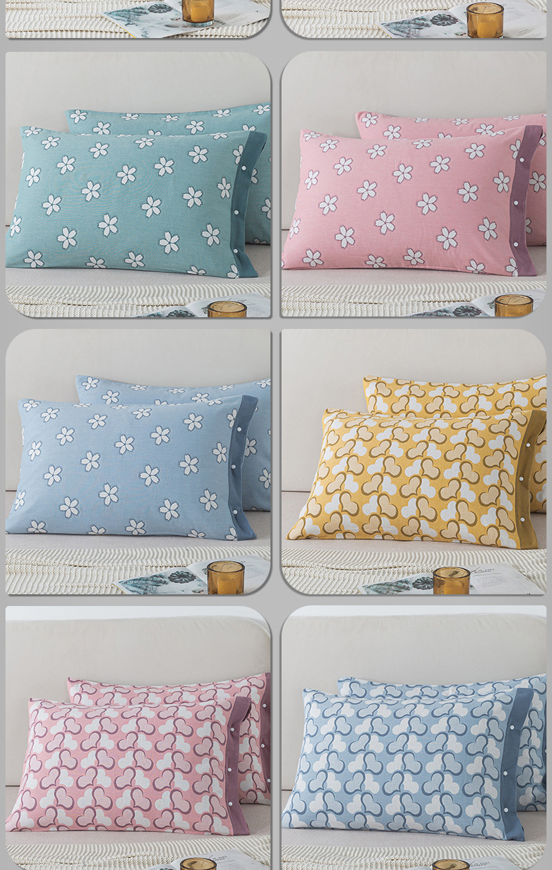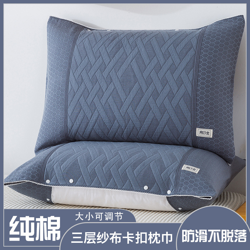 純綿ガーゼ枕カバー一枚入り綿一人大人全包ボタン式家庭用成人48x74枕カバー