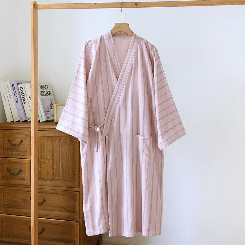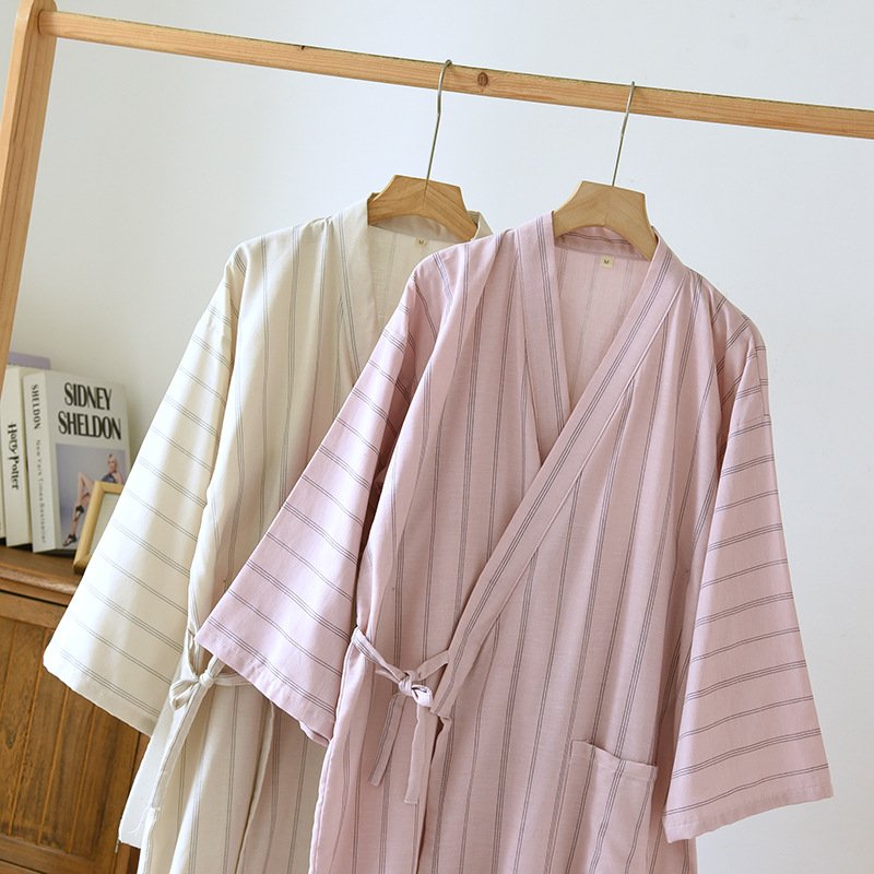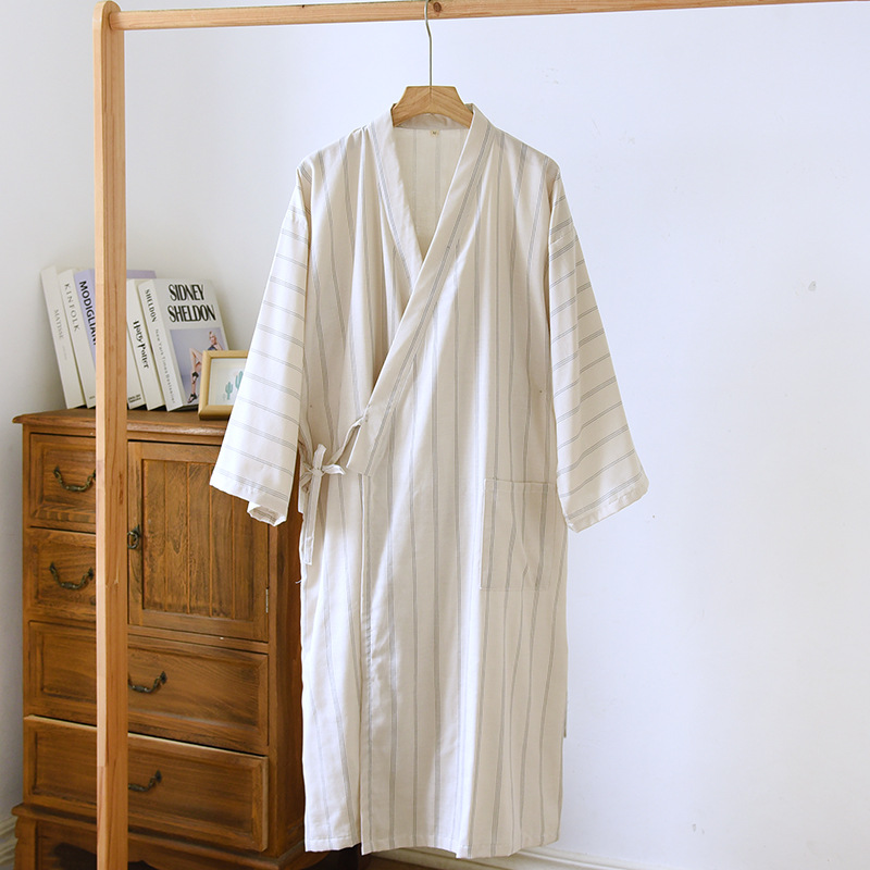 綿二重ガーゼバスローブ男レディース色織パジャマ日本式ホテル浴衣吸水カップル汗蒸服