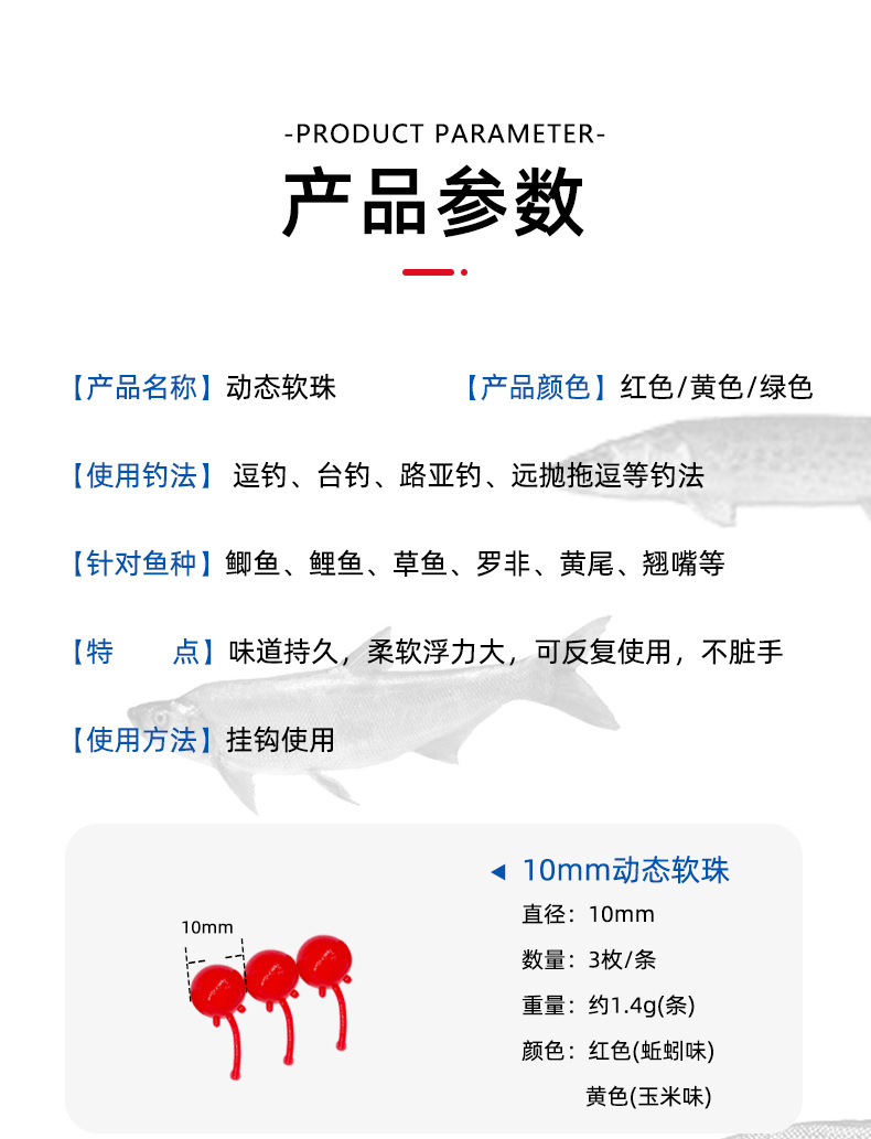 动态软珠逗钓带尾巴软珠钓鱼浮珠反底钓路亚鲫鱼鲤鱼仿生假饵软饵