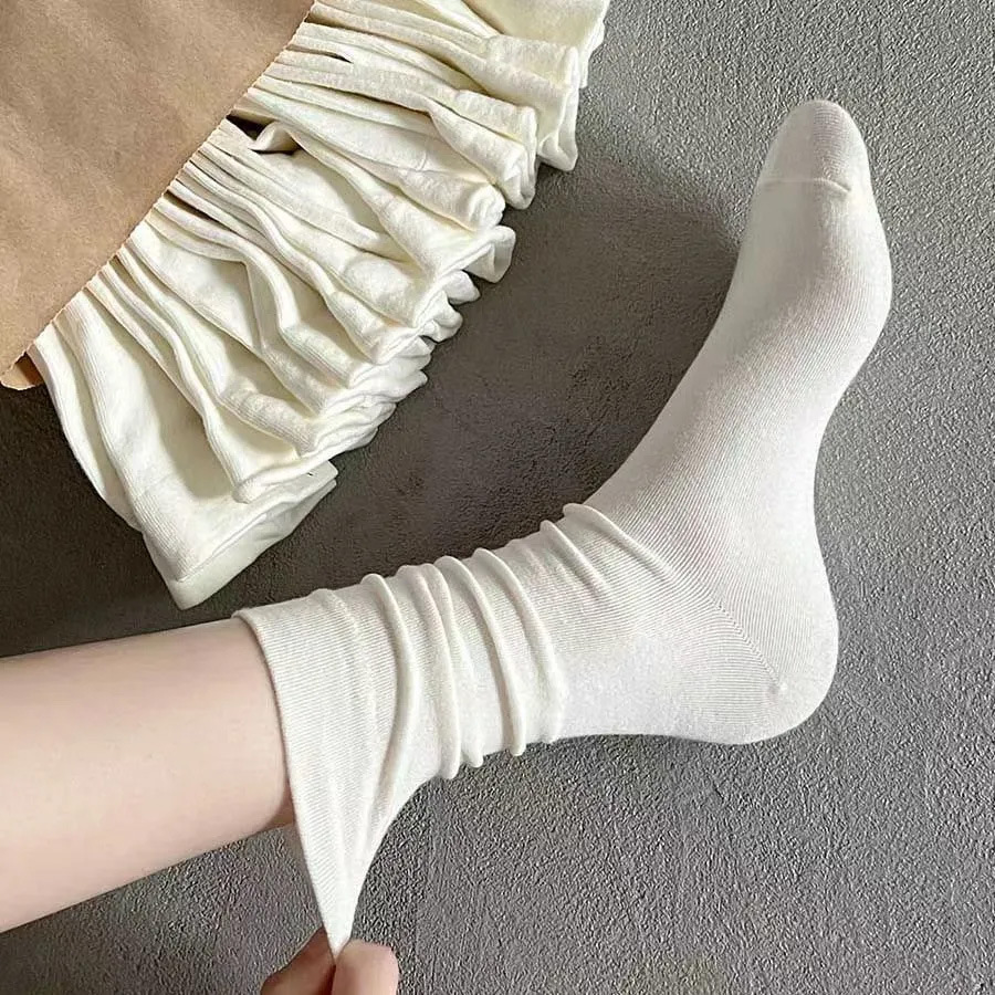 小紅書同項/抗菌無骨靴下月子日系学院風中筒靴下秋白色insスタック靴下