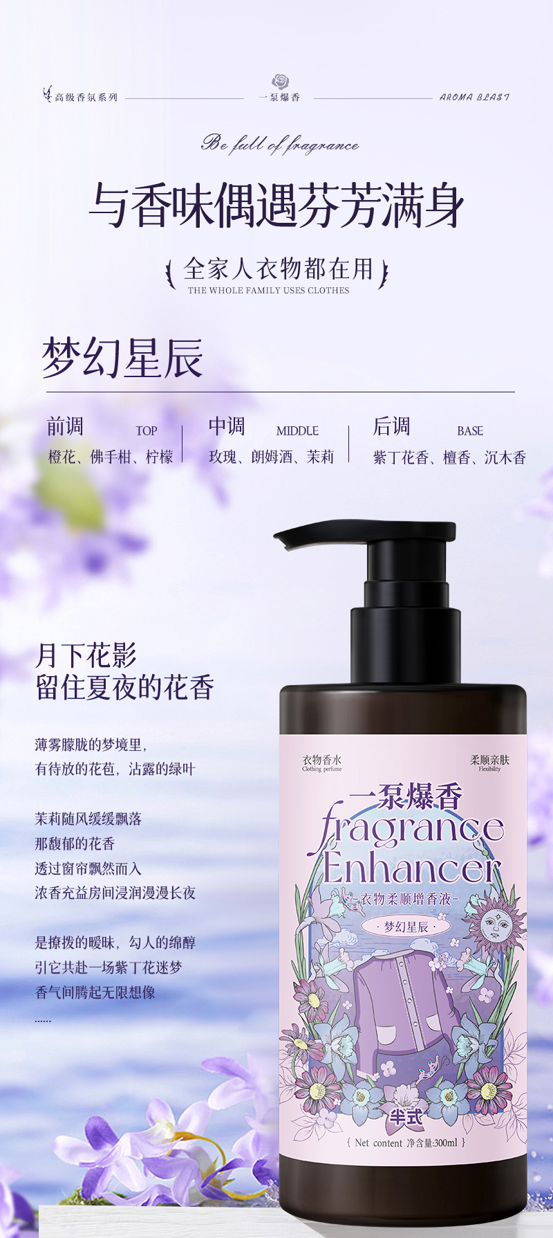 半式一ポンプ爆香衣類柔順増香液持続的に香りを残して異臭柔順衣類300ml大容量