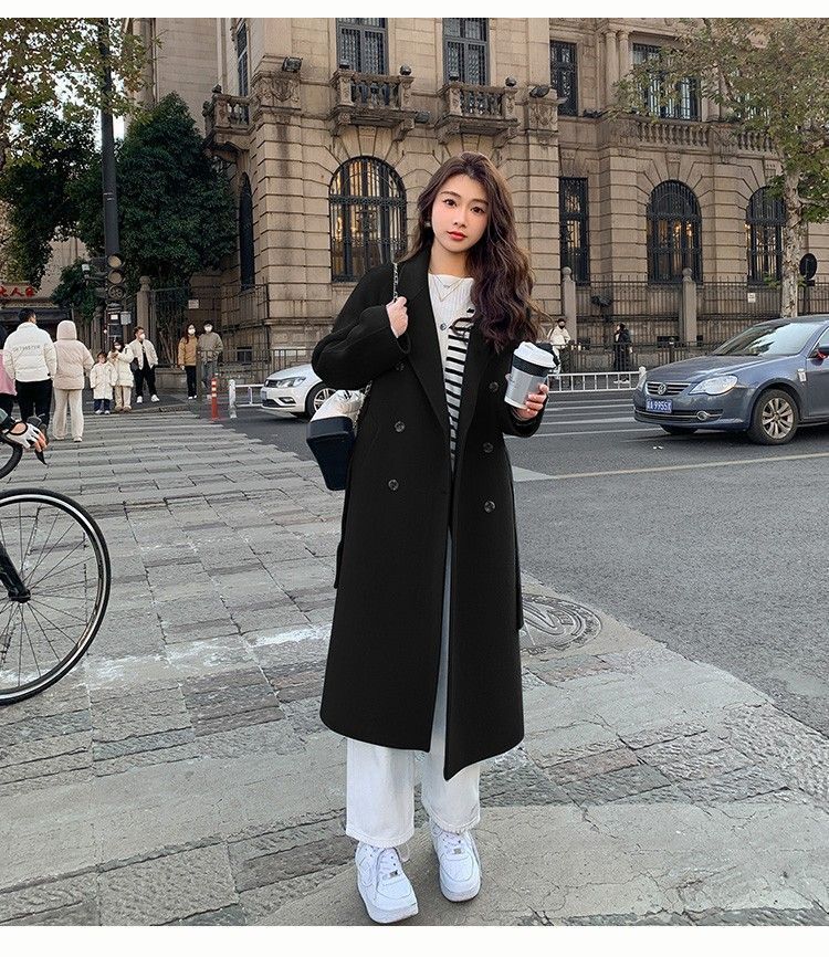 新しい女性のルーズミッドレングストレンディなウールコート韓国スタイル学生ウインドブレーカー女性の小柄な秋冬コート