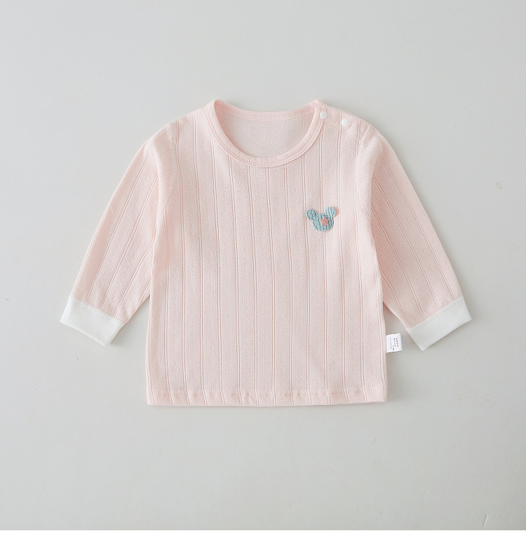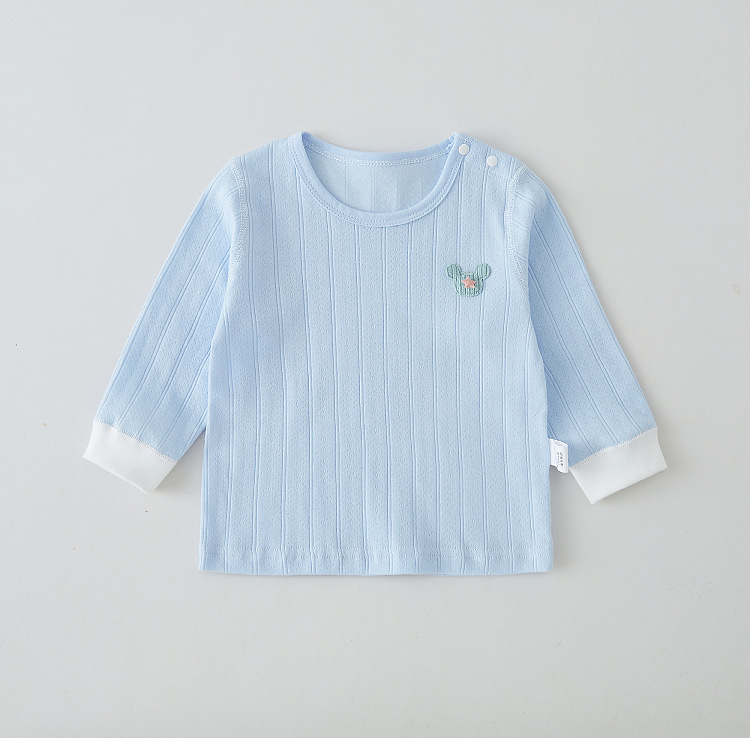 儿童上衣内穿打底秋衣宝宝肩扣长袖内衣春秋婴儿纯棉提花上衣秋季