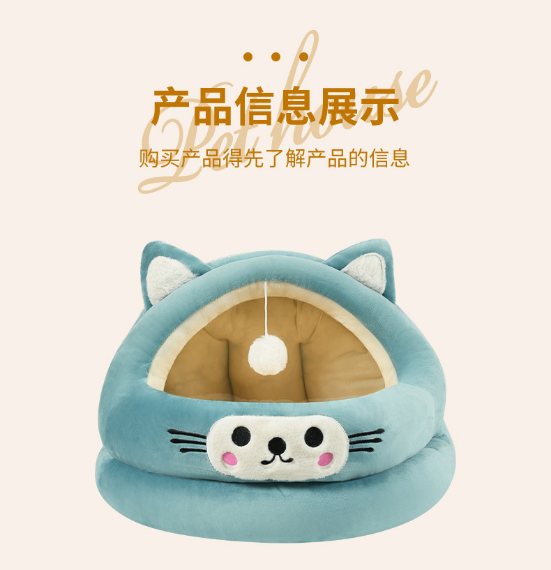 新しいアイスクリームハウスペットハウス、キュートなプリンセスキャットハウス、楽しい猫ハウス、秋冬用暖かい犬小屋、犬用ベッド