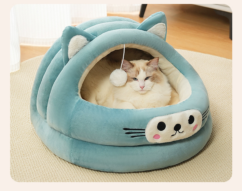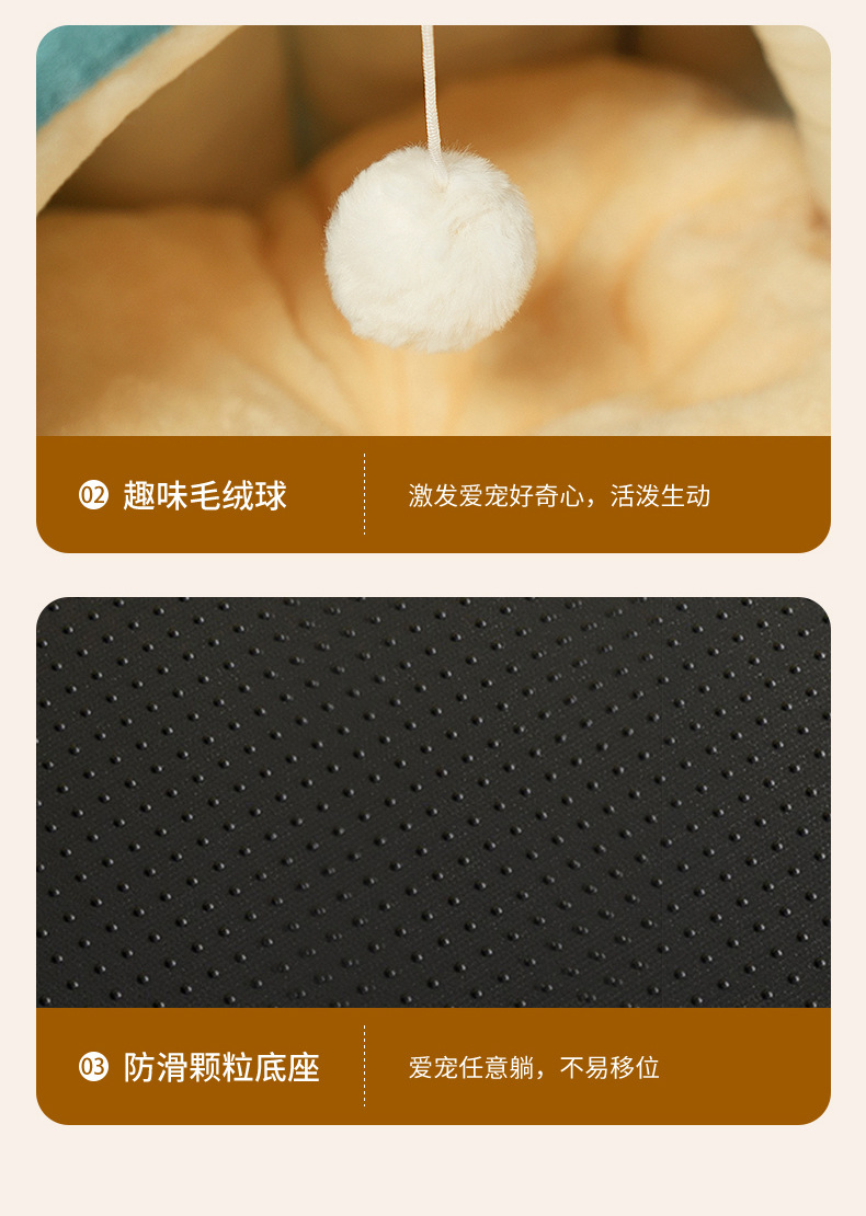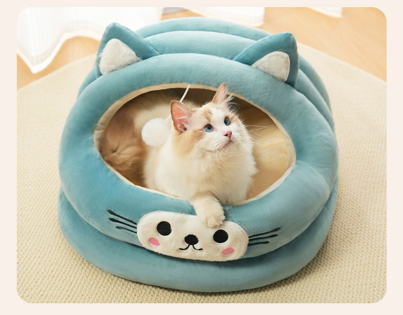 秋と冬のベルベットの猫の巣、閉じたペットの巣、寝袋、大きな猫の巣、深い睡眠の犬小屋、寒さから守る犬小屋