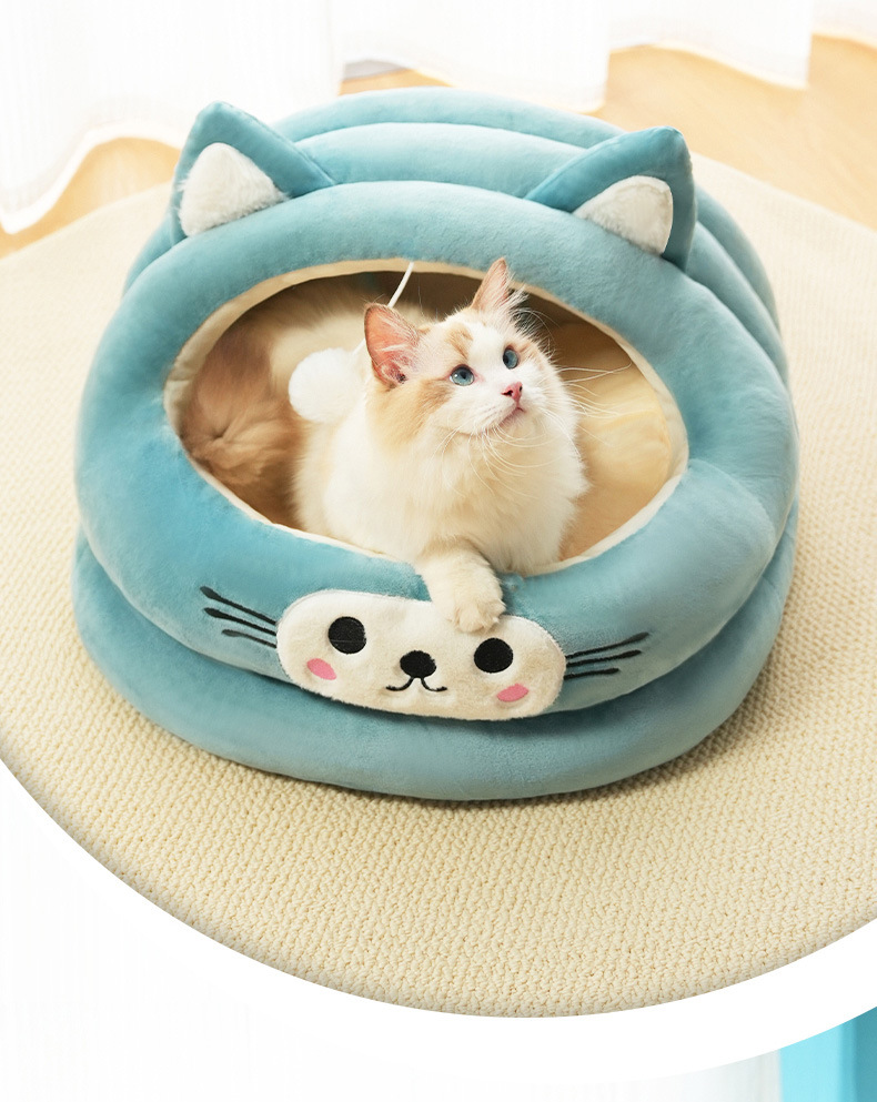 秋冬用厚手保温モンゴルパオ型ペットベッド、深い眠りのための猫マット、猫犬兼用ベッド