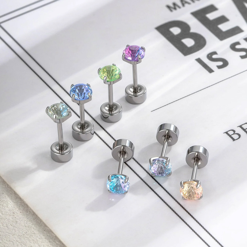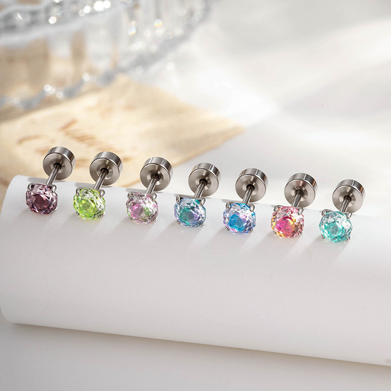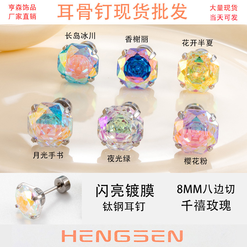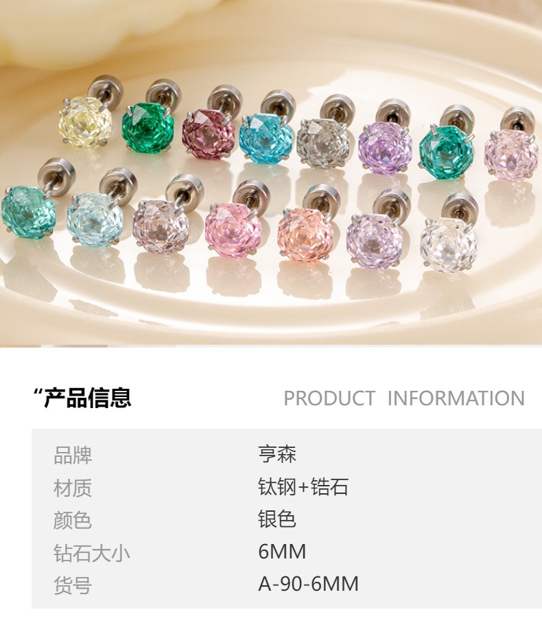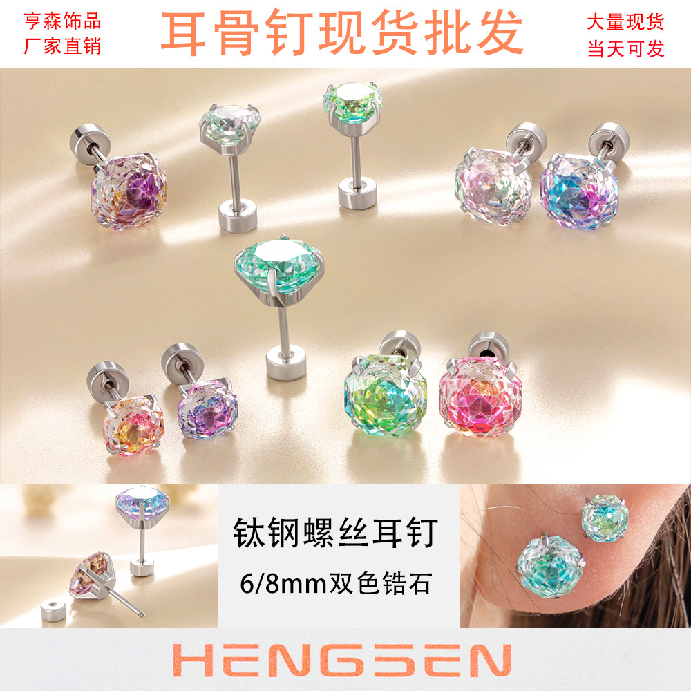 亨森6/8mm花火カットジルコンねじピアスチタン鋼耳骨耳ウォームピアス小衆高級感少女耳飾り