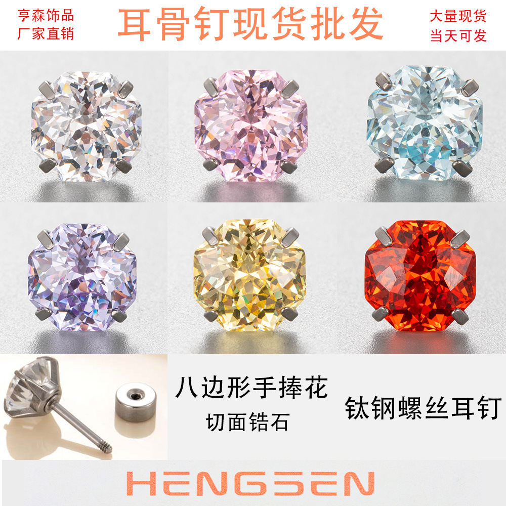 亨森巨閃メッキ八角形千年薔薇切ジルコンピアス細い棒チタン鋼ねじ耳骨耳ウォーム