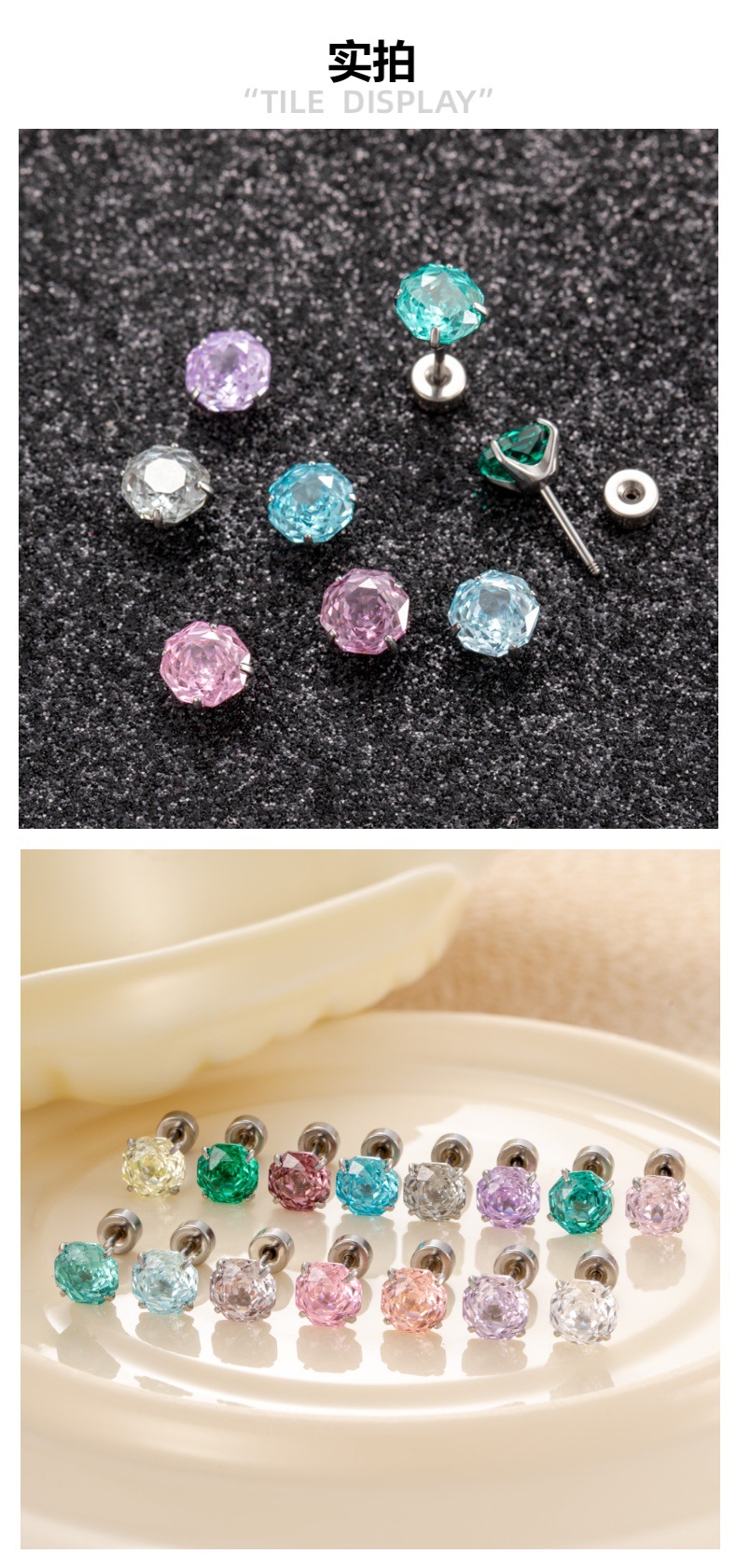 亨森甜美糖果色双色渐变烟花切锆石4mm少女可爱软骨穿刺耳骨钉