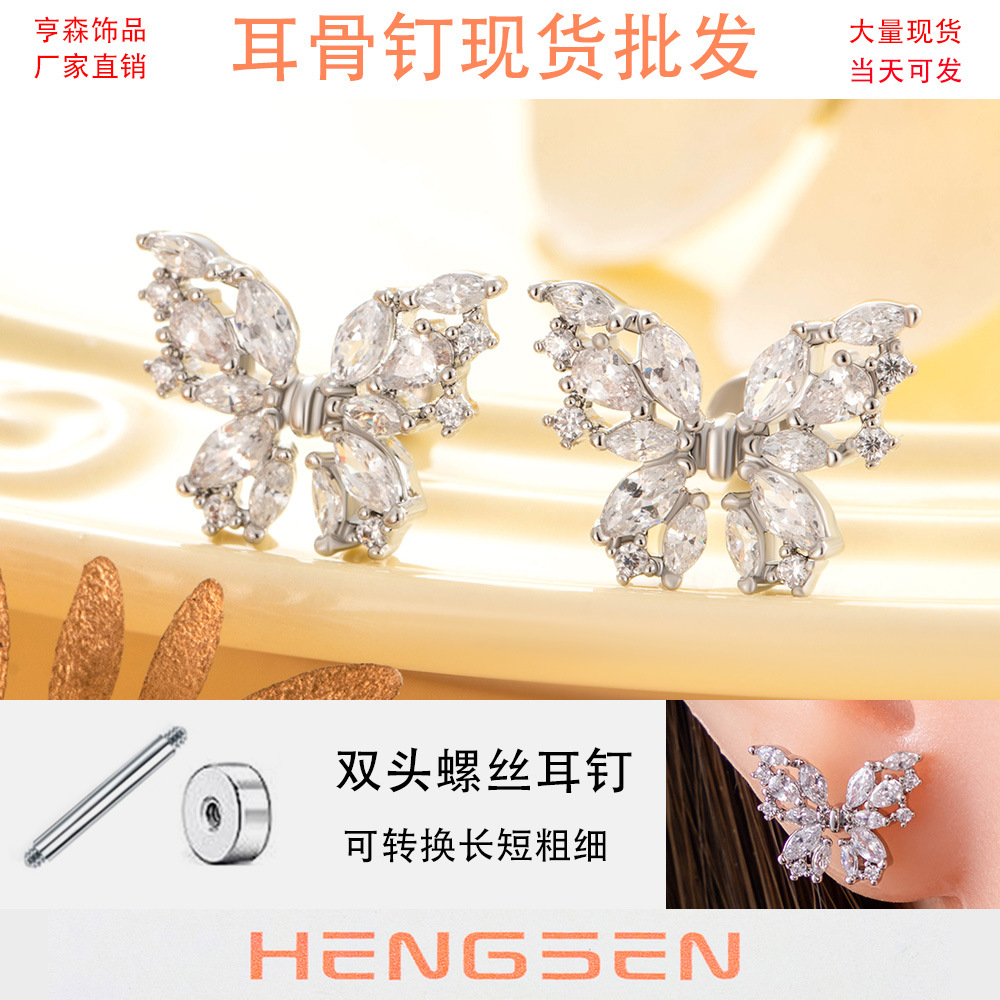亨森震え音小紅書新八心八矢ジルコン雪花チタン鋼双頭は耳の耳の骨釘を取り外すことができる