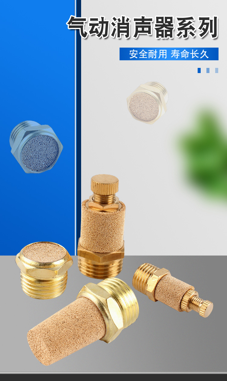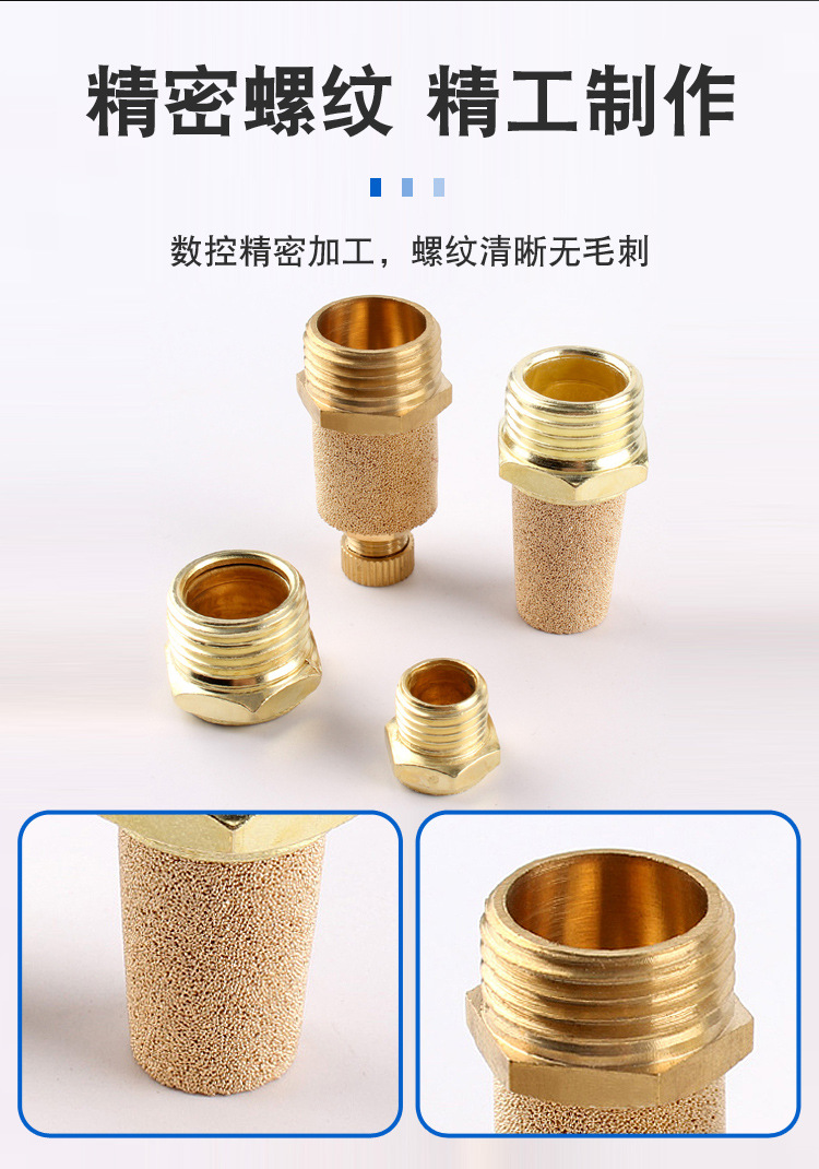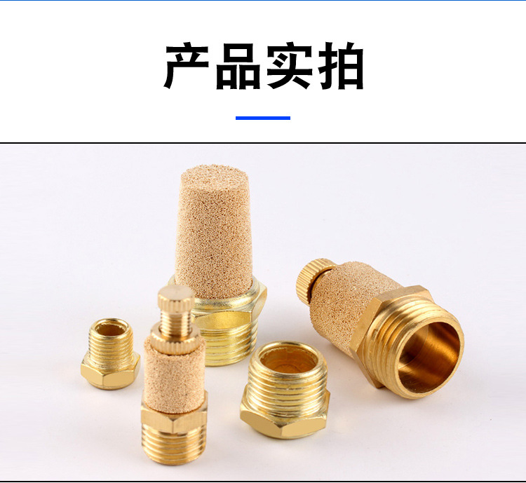 銅製長頭サイレンサー、真鍮製平頭空気圧電磁弁サイレンサー、半銅製M5排気1/2インチフィルタージョイント