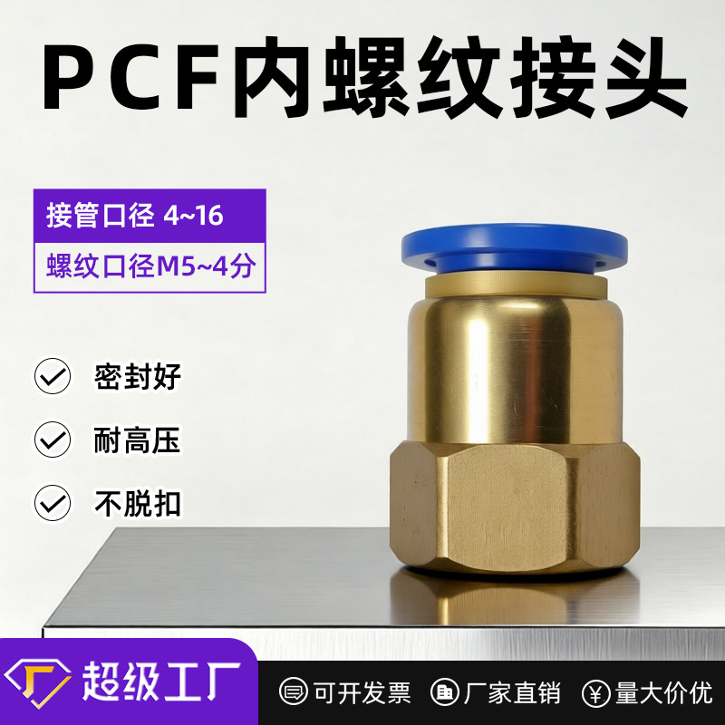 エアクイック継手銅めねじストレート気管ワンタッチPCF4-01/6-01/8-02/10-03/12-4
