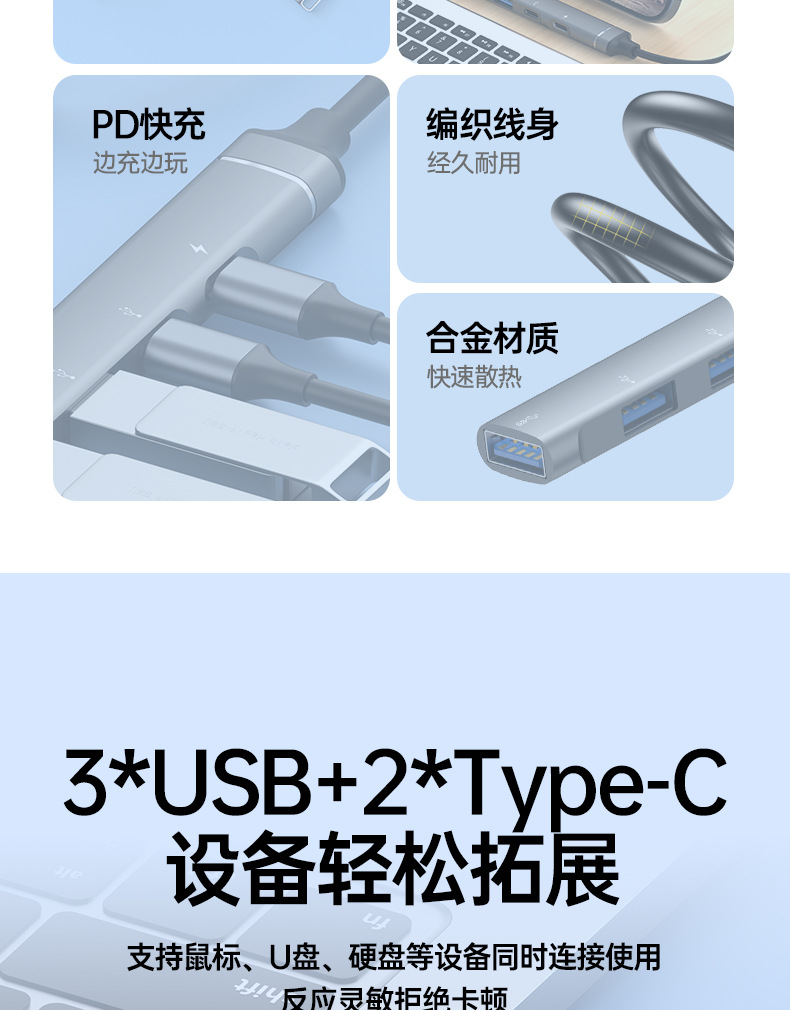 メーカー直供usb3.0拡張ドック・スプリッタtypec拡張ドック・ストレート・サイド・パッチ・コンパクトで便利