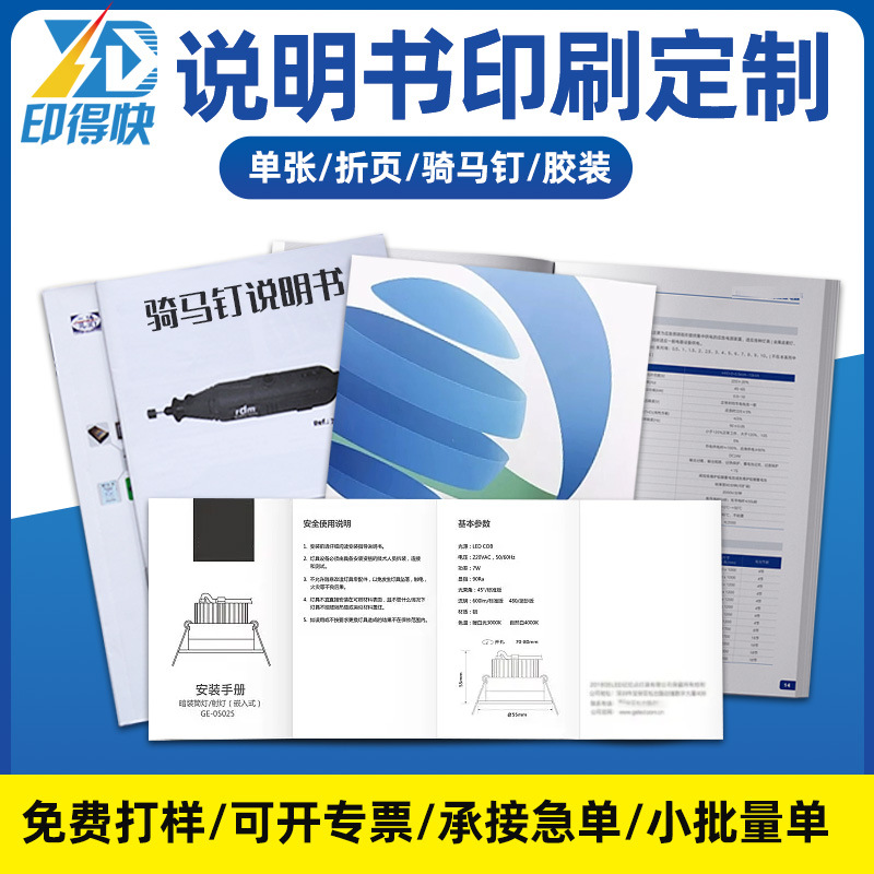 产品说明书定 制彩色黑白骑马钉胶装说明书印刷手册对折三折四折