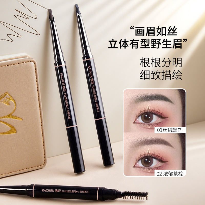 KACHEN咖臣立体造型眉笔双头带眉刷根根分明野生眉持久砍刀笔芯