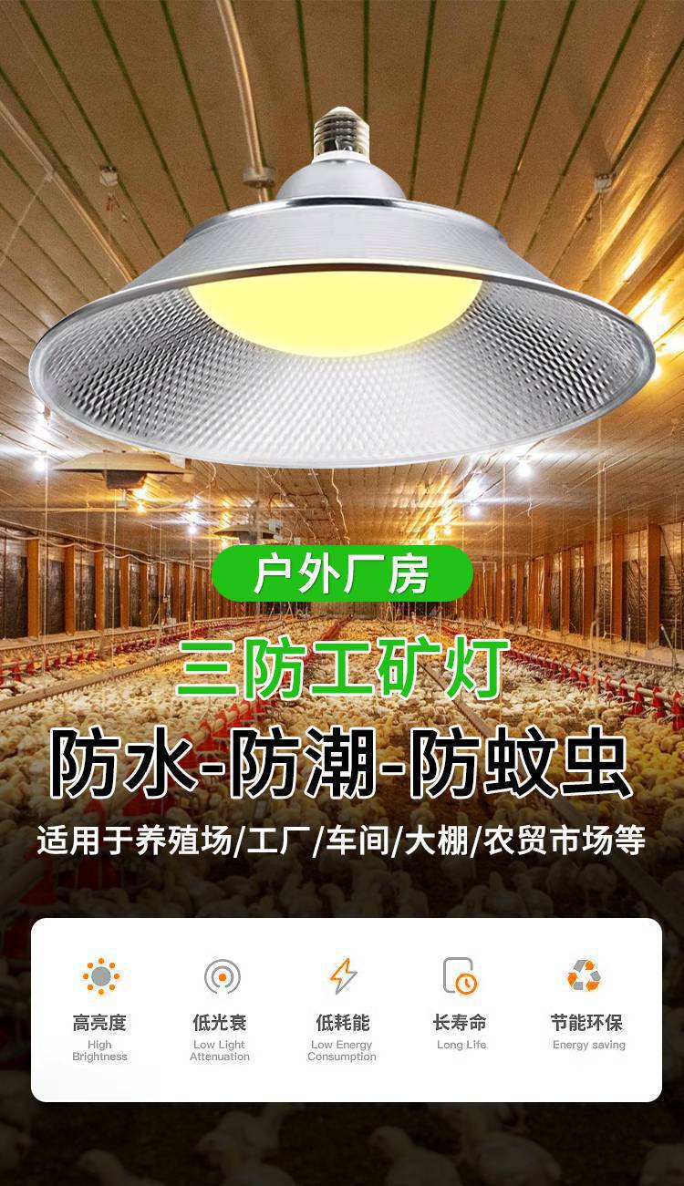 LED暖光灯工鉱灯黄光養殖灯e 27ねじ口大出力家庭用省エネ三防灯工場工場